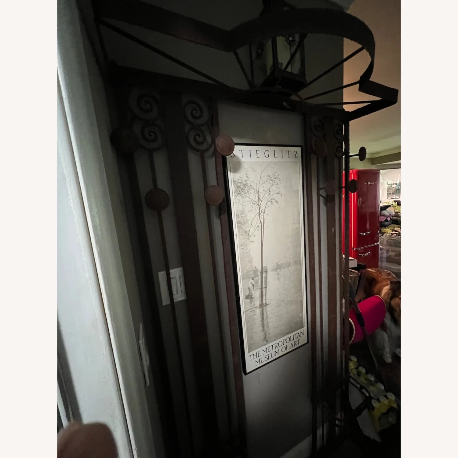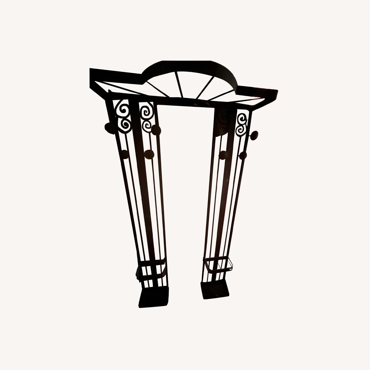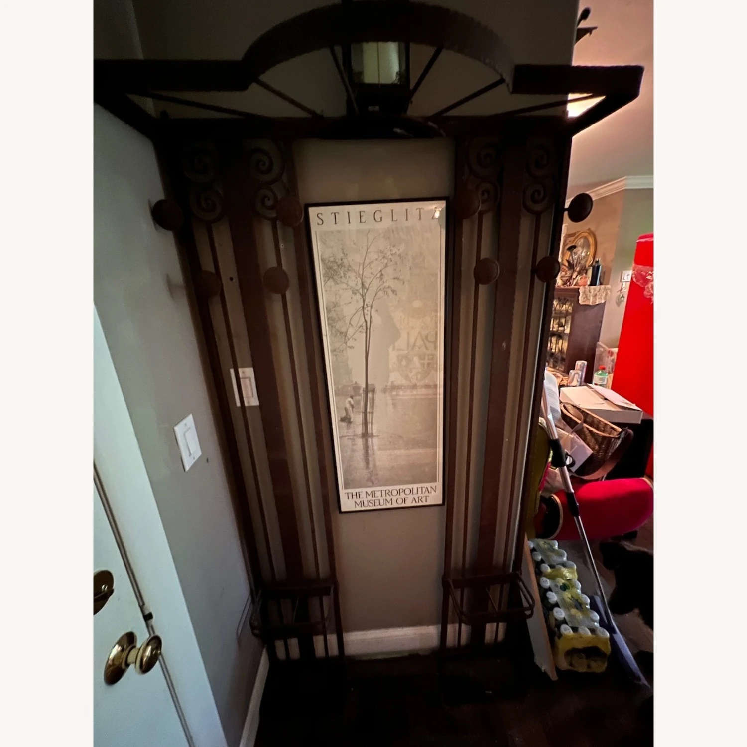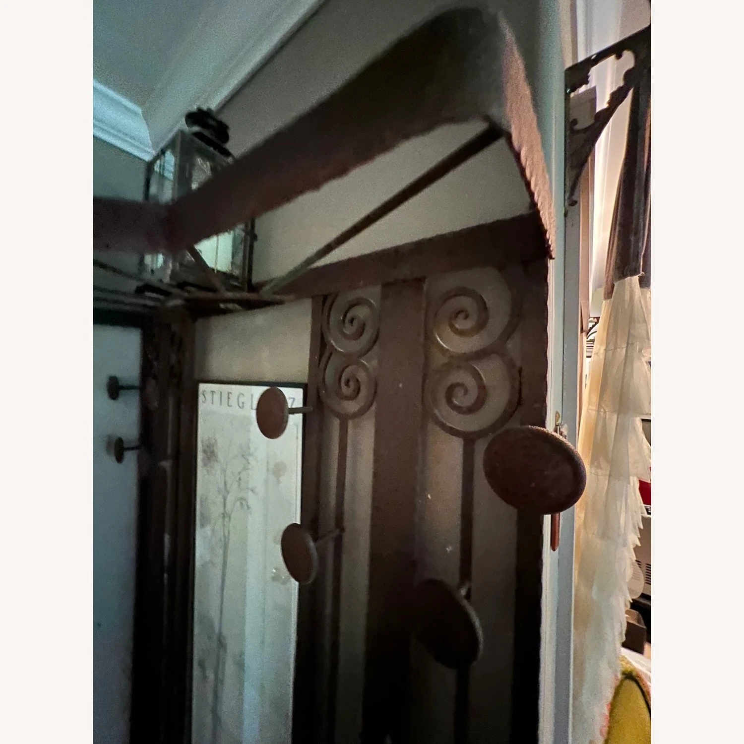 Seller’s Notes: A French wrought iron hall tree, purchased from eBay about five years ago. From the 1920s. In the style of Edgar Brandt, who was an iron worker and furniture designer in Paris. (It could actually be an Edgar Brandt, but I couldn’t be sure.)