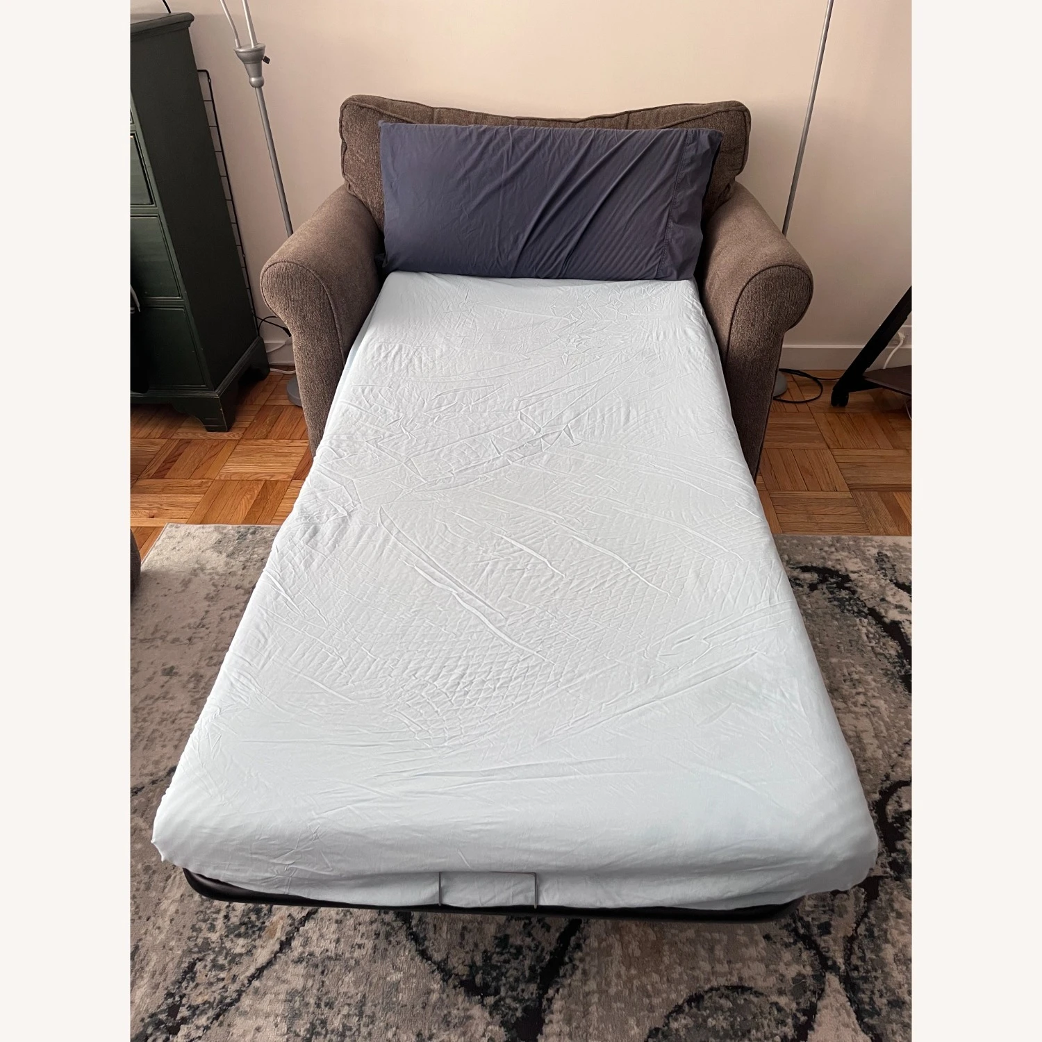 Wear and tear details: Pull out mattress inside is a bit aged but still good condition. Otherwise the chair is in very good condition.