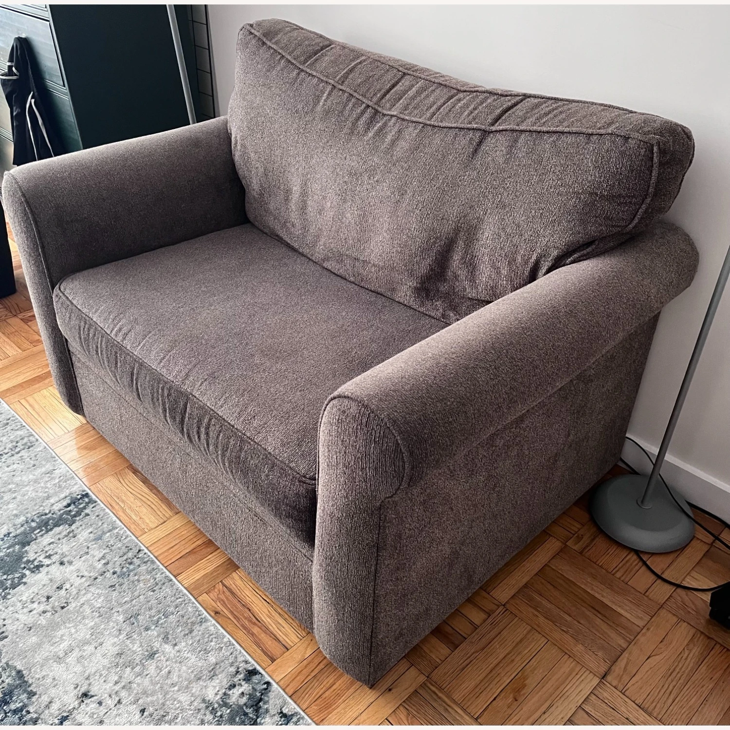 Seller’s Notes: Ashley Furniture Nesso Convertible Loveseat / Bed. Not sure if this is the exact same model as the link provided in this listing, but it looks nearly identical (the link added here may not be a convertible like this one is which is a plus). It is a very comfortable loveseat which pulls out into a twin bed. It is about 8 years old or so, but has been rarely used and is still in very good condition. We currently have no space for it after moving into a new studio, so looking to sell it.
