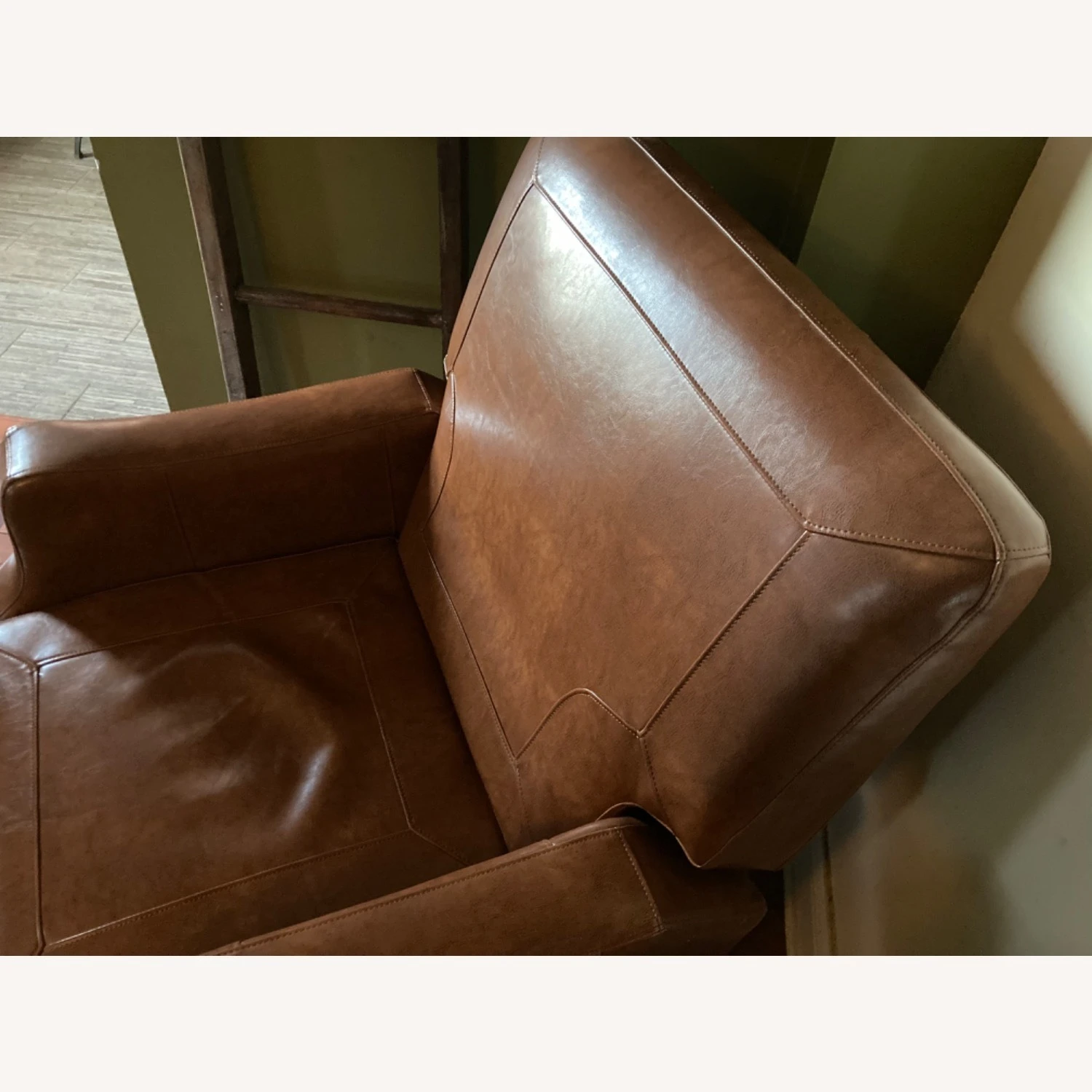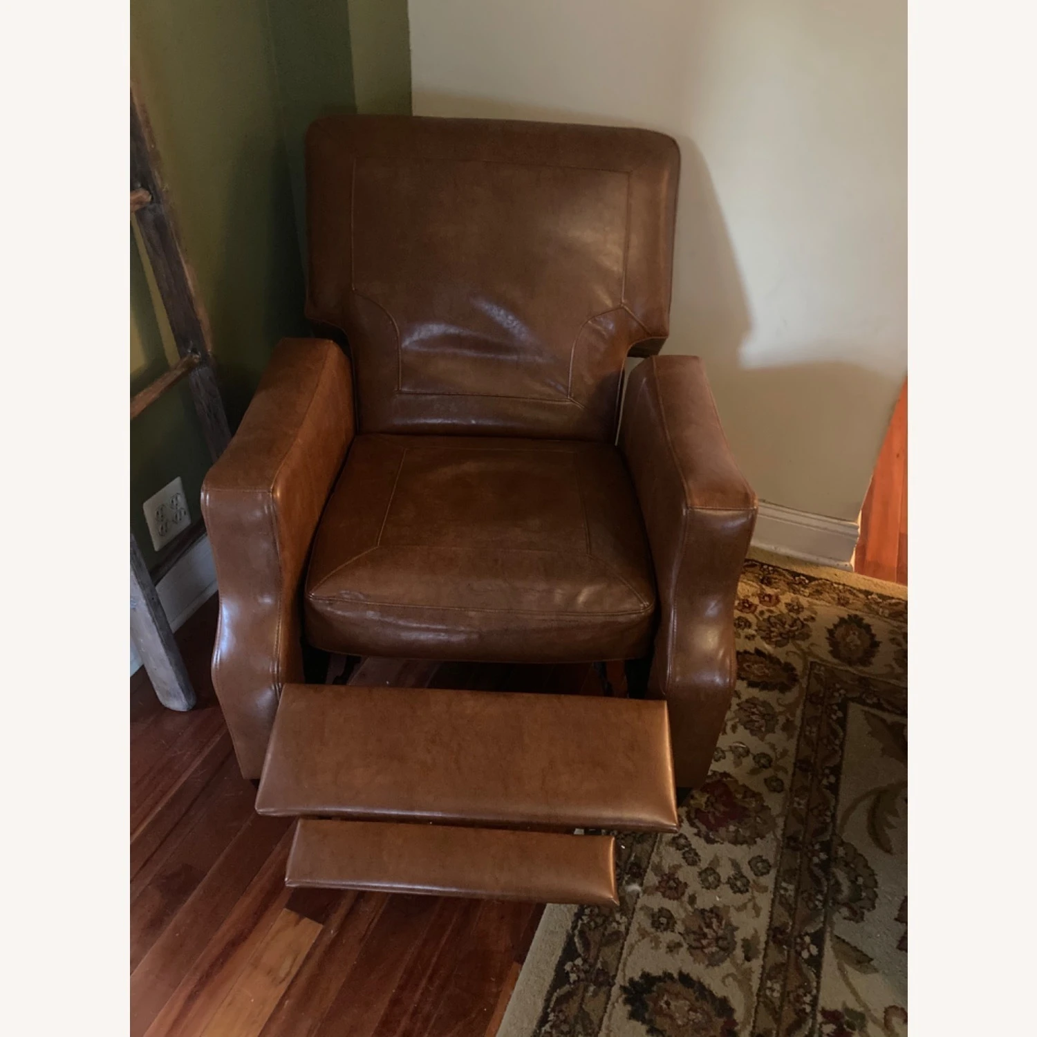 Seller’s Notes: A beautiful recliner in a caramel brown finish. The material and recliner is firm but comfortable. Seat height 18 inches and seat width 22 inches. Very good condition. See pictures and send message with any questions.