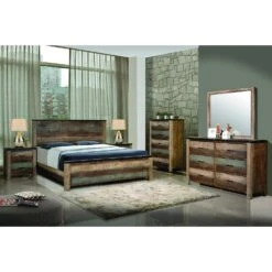 Other Rustic Style Nightstand In Solid Wood Multi-Tonal Finish