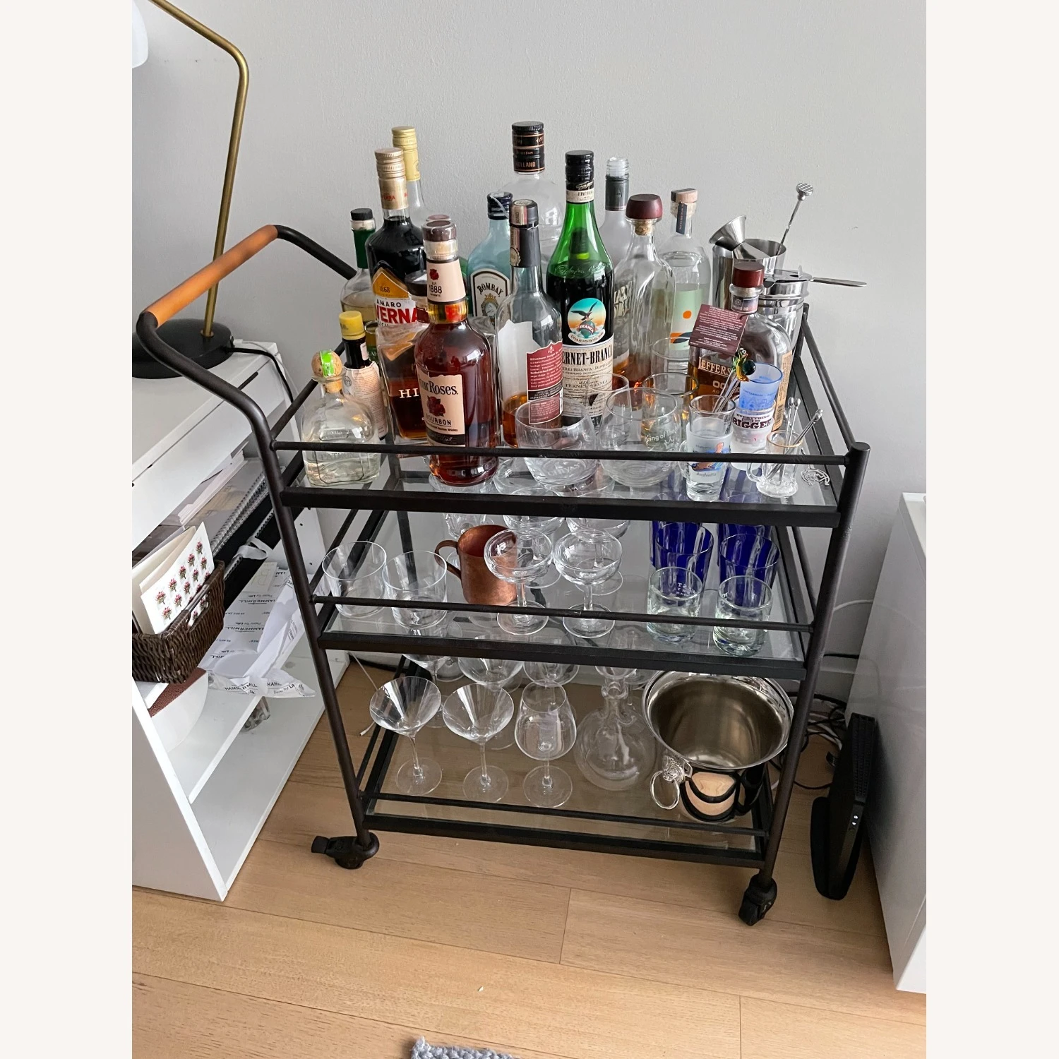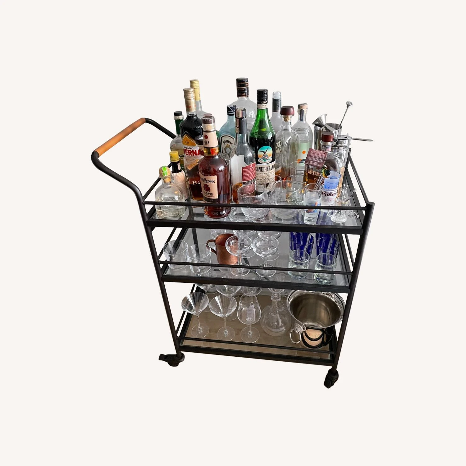 Seller’s Notes: Moving and don’t need a bar cart anymore. Great glass bar cart. Corners slightly chipped but not wobbly at all and you cannot tell
