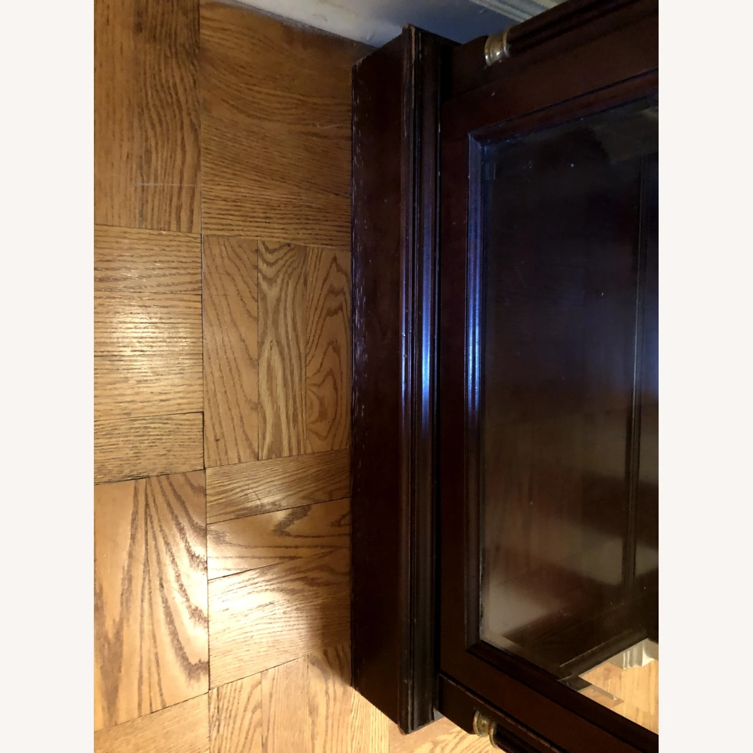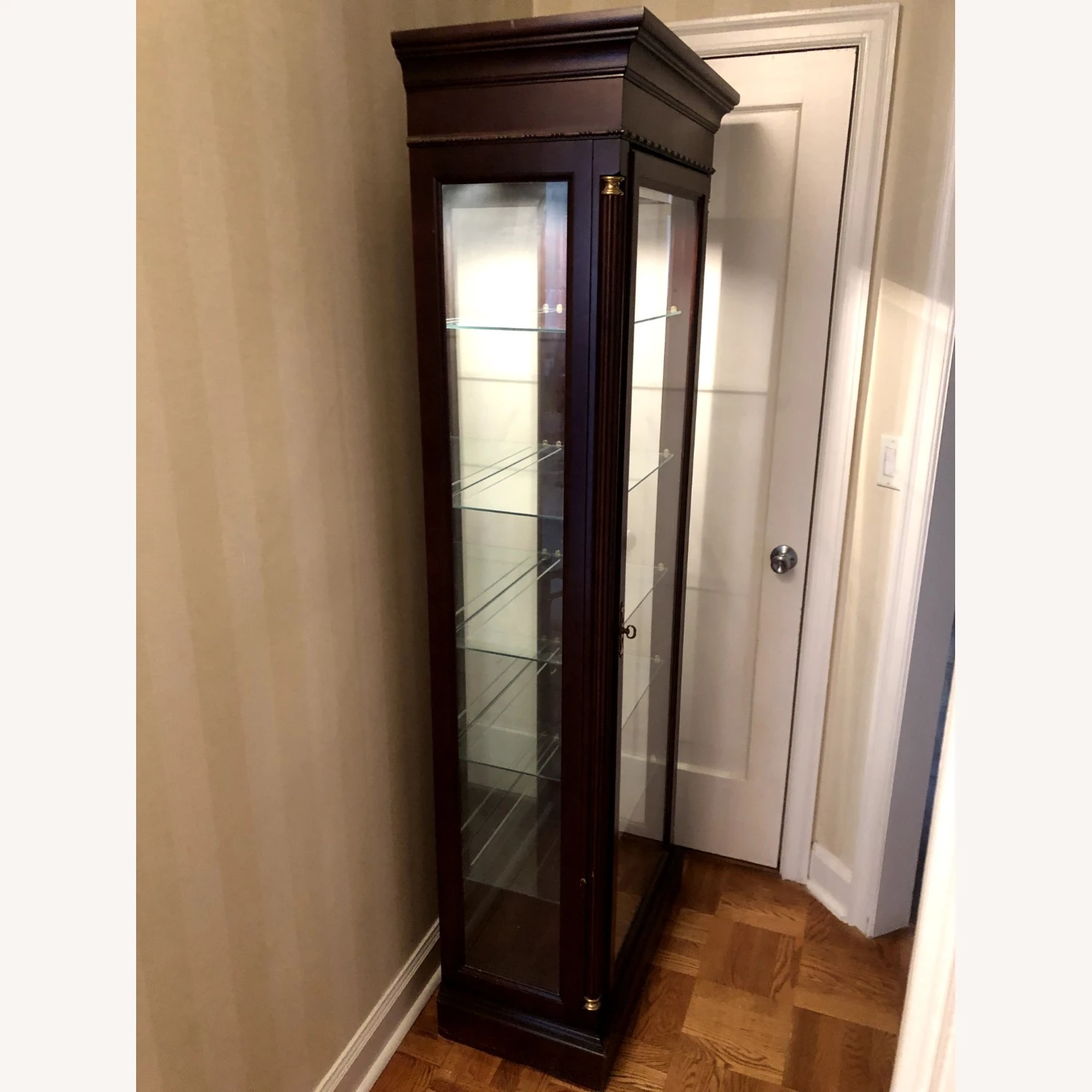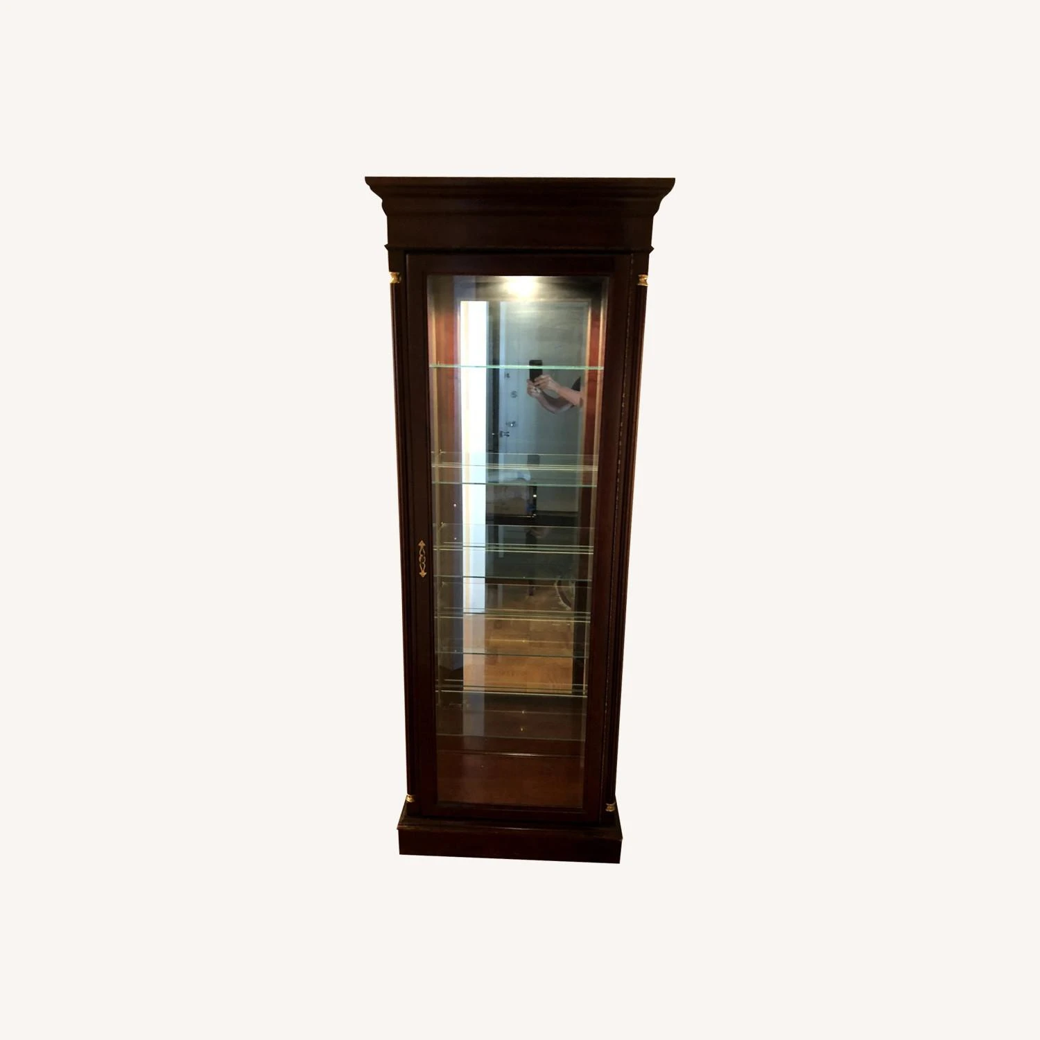 Seller’s Notes: Cherry wood cabinet with glass shelves and built-in interior light.