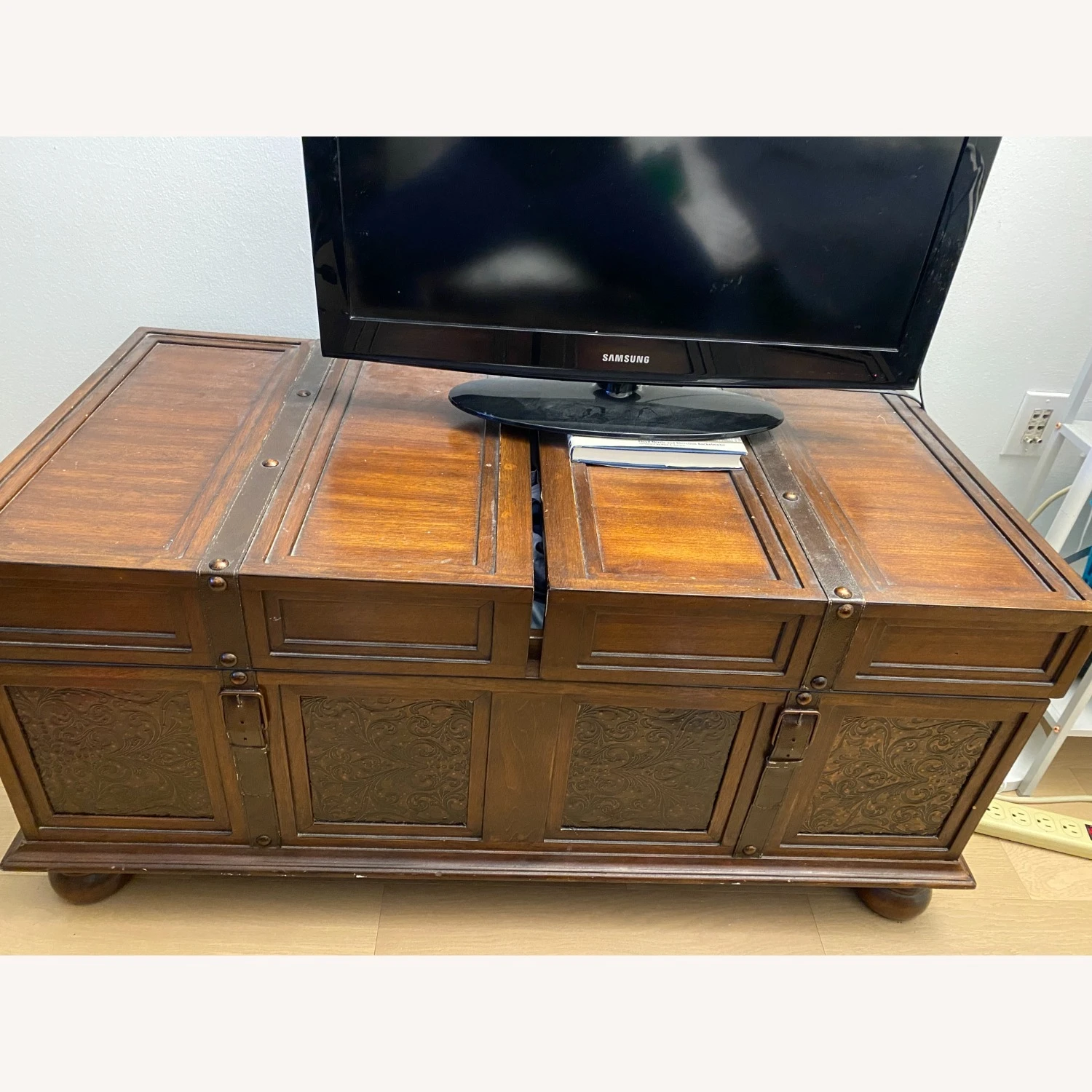 Seller’s Notes: OPEN TO OFFERS and REDUCED PRICE! Great storage trunk that is perfect for towels, sheets, or whatever else you want to store. It is a great piece for a bedroom or living room. The unique style can add to any room. It slides open on the sides vertically to make it easy to open and slightly doesn’t close all the way on the right which is picture but still works well.