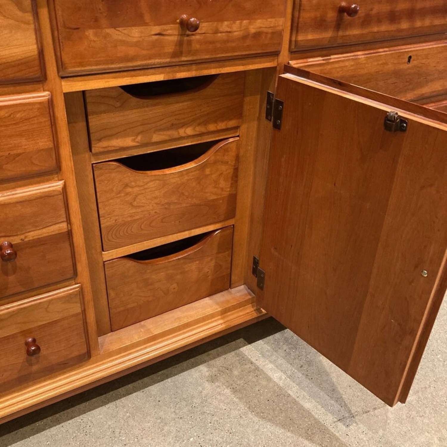 The Shaker style of this dresser is characterized by its clean and unadorned design, focusing on functionality and simplicity. The straight lines, tapered legs, and subtle details showcase the beauty of the natural wood, while the rich finish adds a touch of warmth and sophistication to the piece.