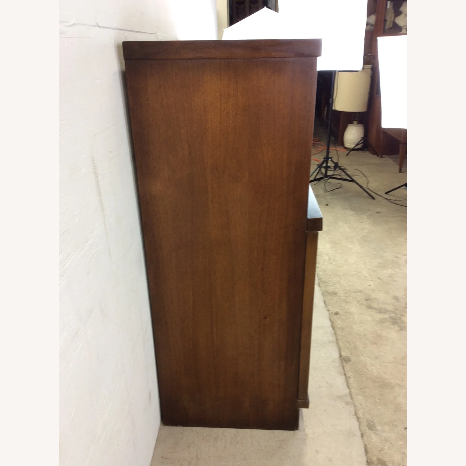 Original walnut finish is in good condition. Only minor scuffs, slight scratches, small edge dings consistent with age and regular use. Overall this dresser is in VERY good vintage condition. Drawers glide well.