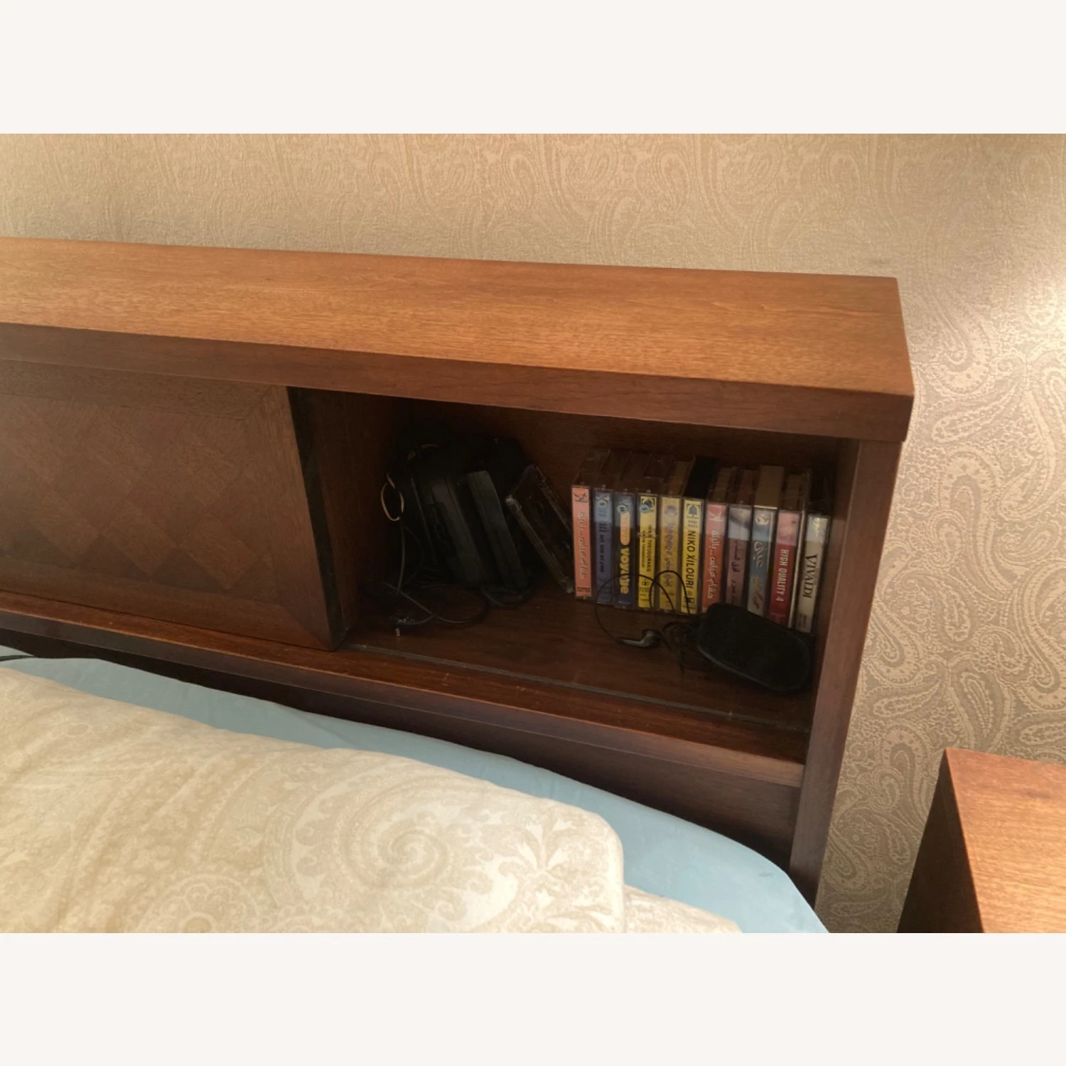 I believe this is walnut, and is part of a complete bedroom set, which includes the headboard (and metal bed frame), two night tables , a lowboy dresser, and an absolutely awesome highboy dresser. It belonged to my parents, who were ancient art dealers in New York City. They treated their furnishings like works of art, so everything is in excellent condition.
