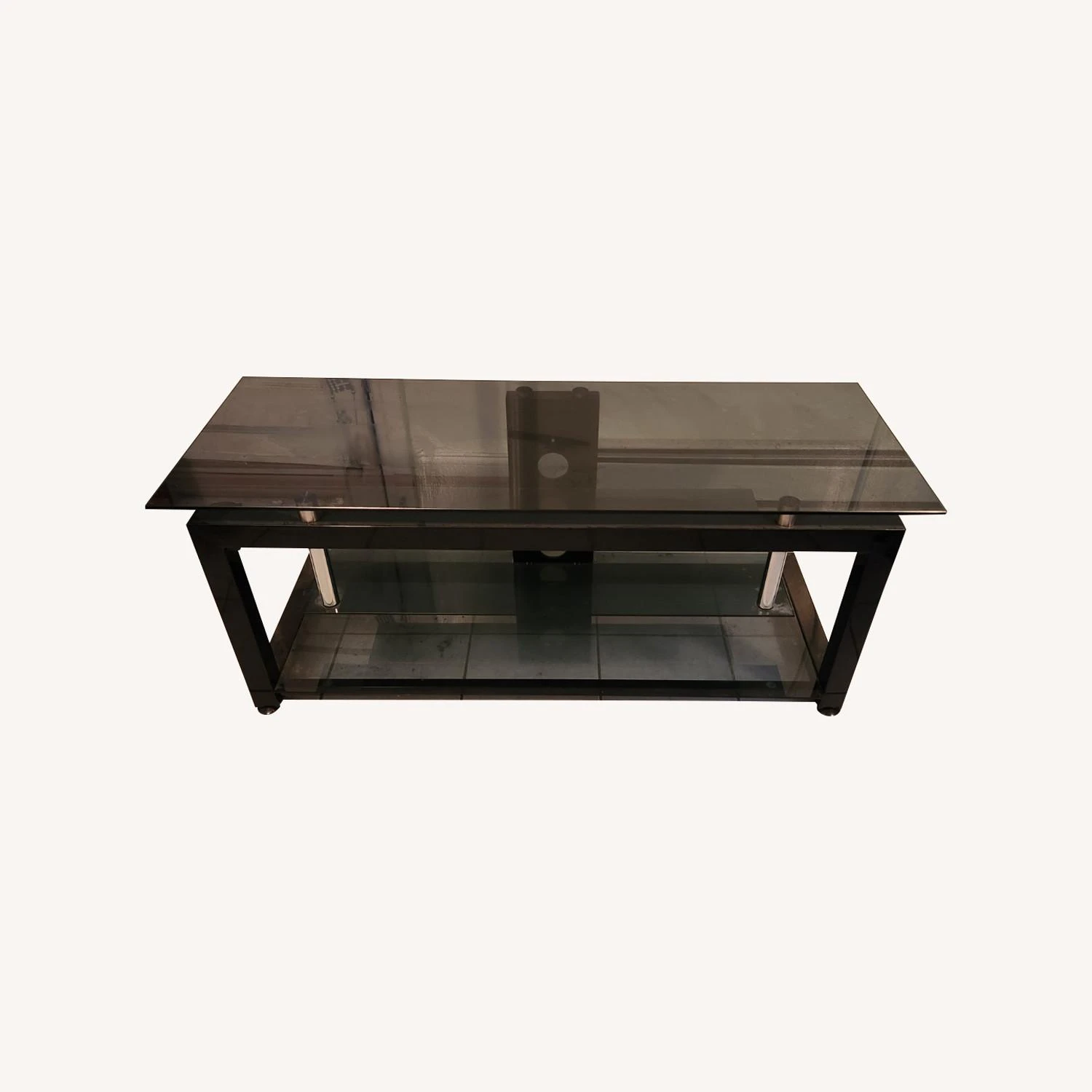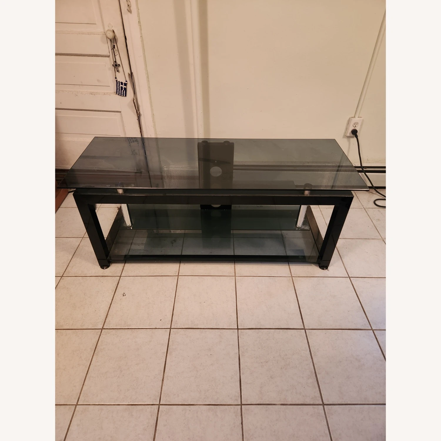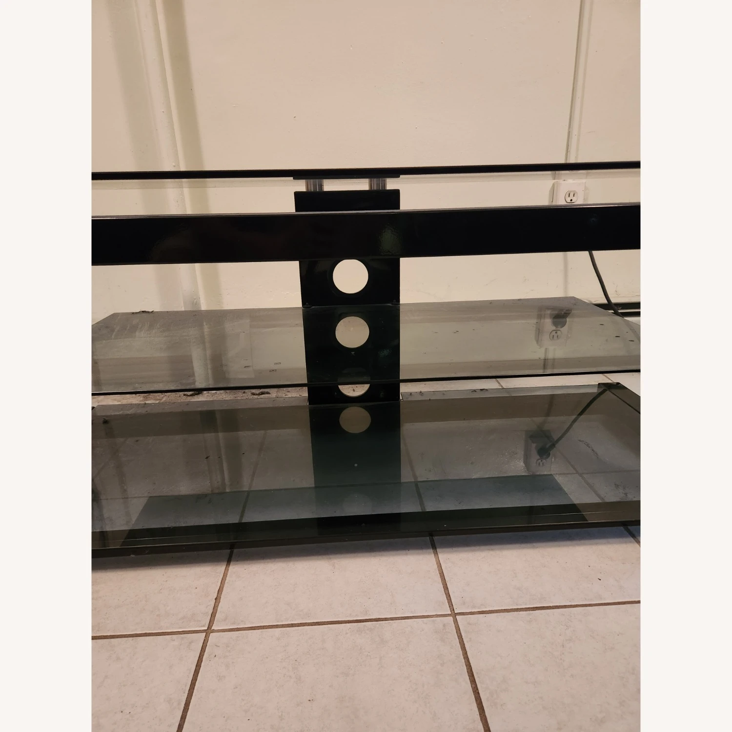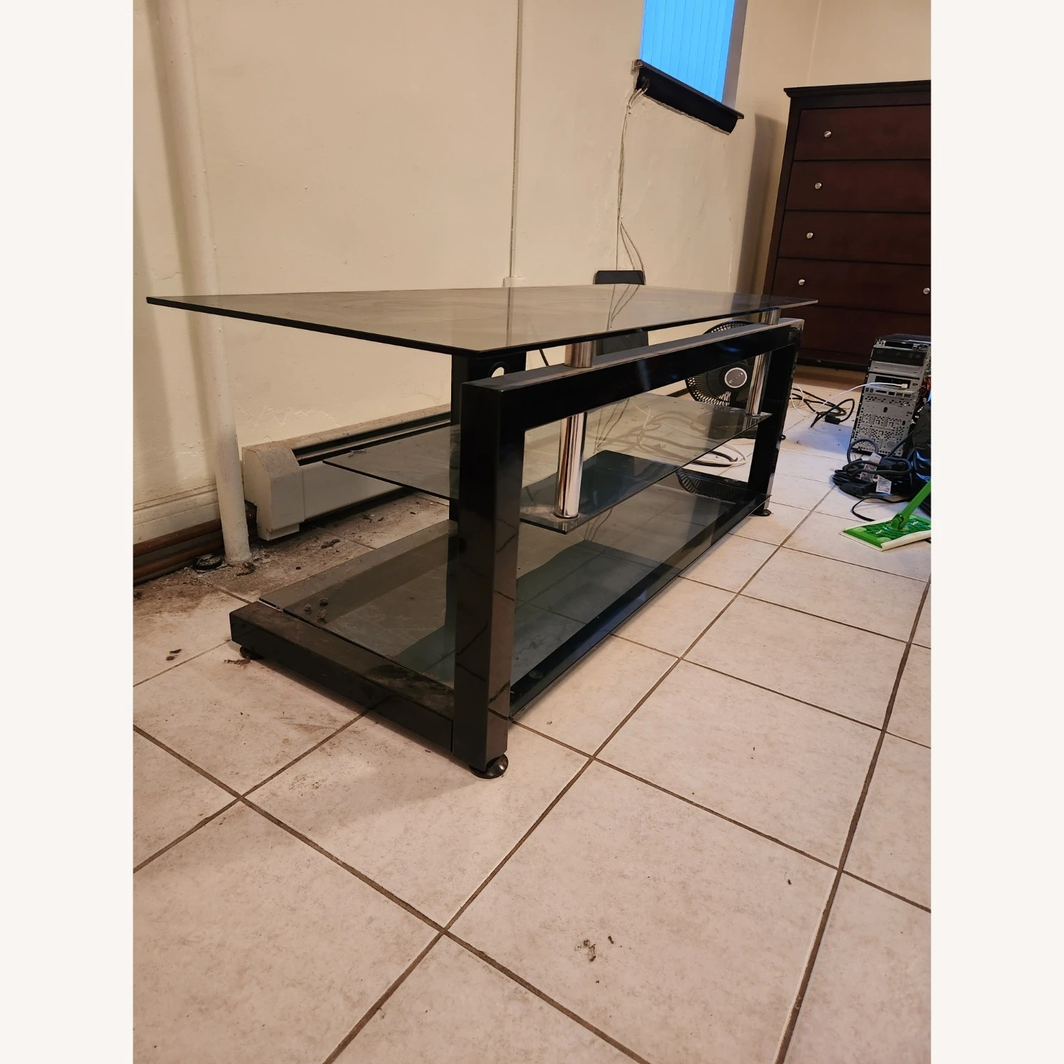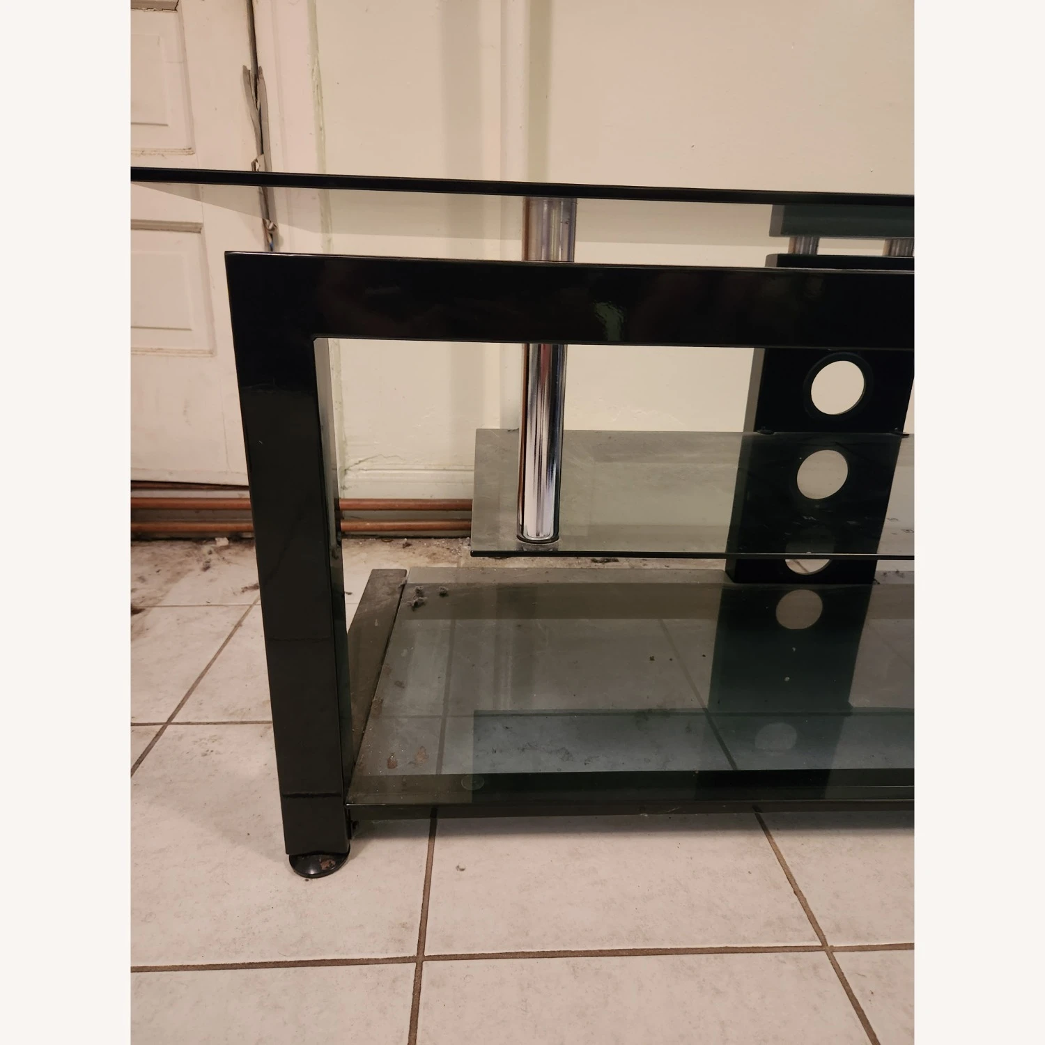 Seller’s Notes: Stylish glass entertainment center that comfortably holds a 50″ TV along with video game consoles, and other electronics that you need.
