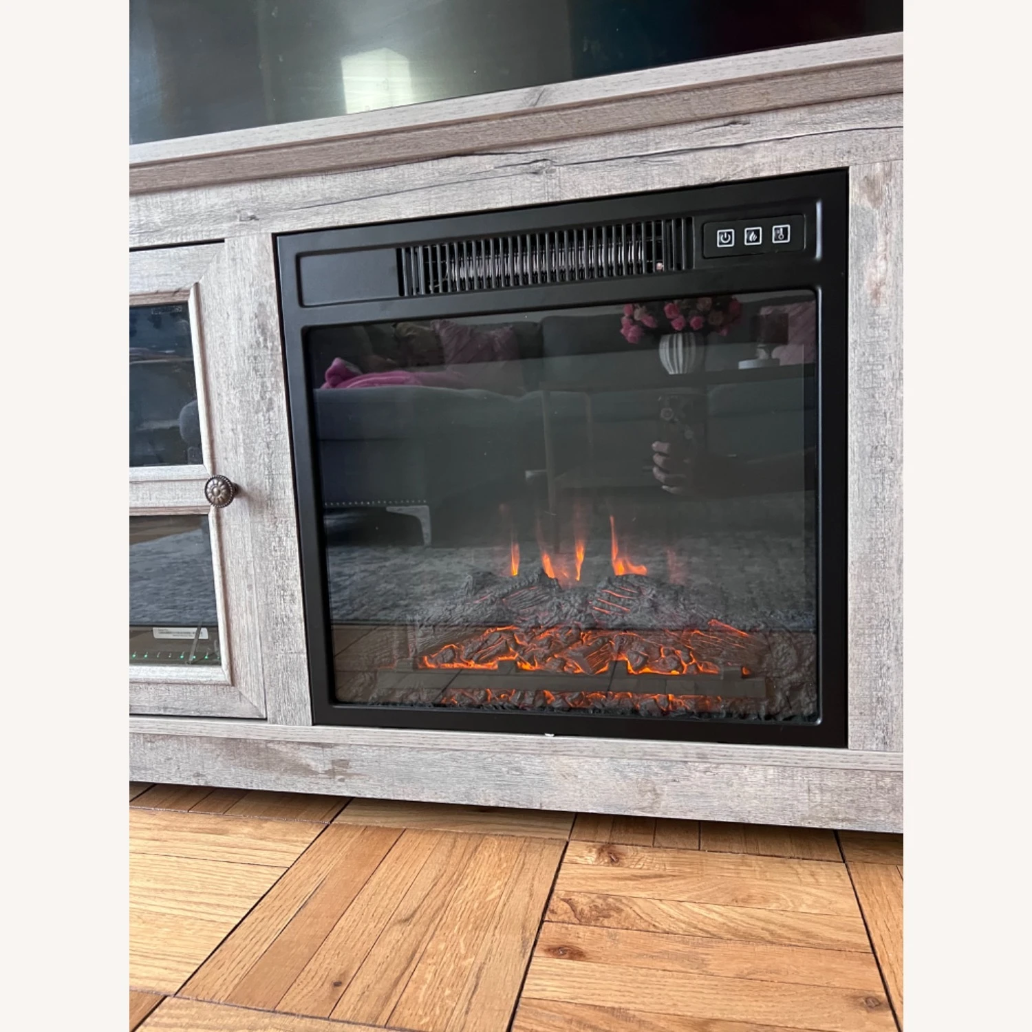 This TV stand comes with an in-built infrared fireplace that mimics the look and feel of actual flames arising from a wood-burning unit. It lends a warm and cozy feel to the space for a relaxed ambiance that feels every bit homey and snug. Plus, infrared heating won’t dry out the indoor air, preventing dry skin or sinus issues. Safer, healthier air while being able to enjoy the warmth of a fireplace.