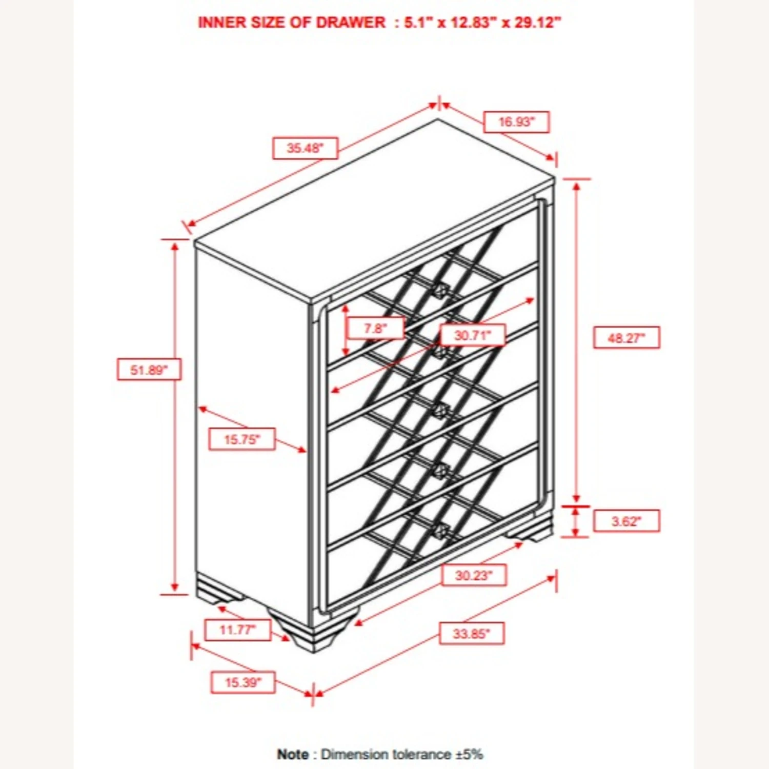Overall Dimensions: Width: 35.5 inches, Height: 52.25 inches, Depth: 17 inches