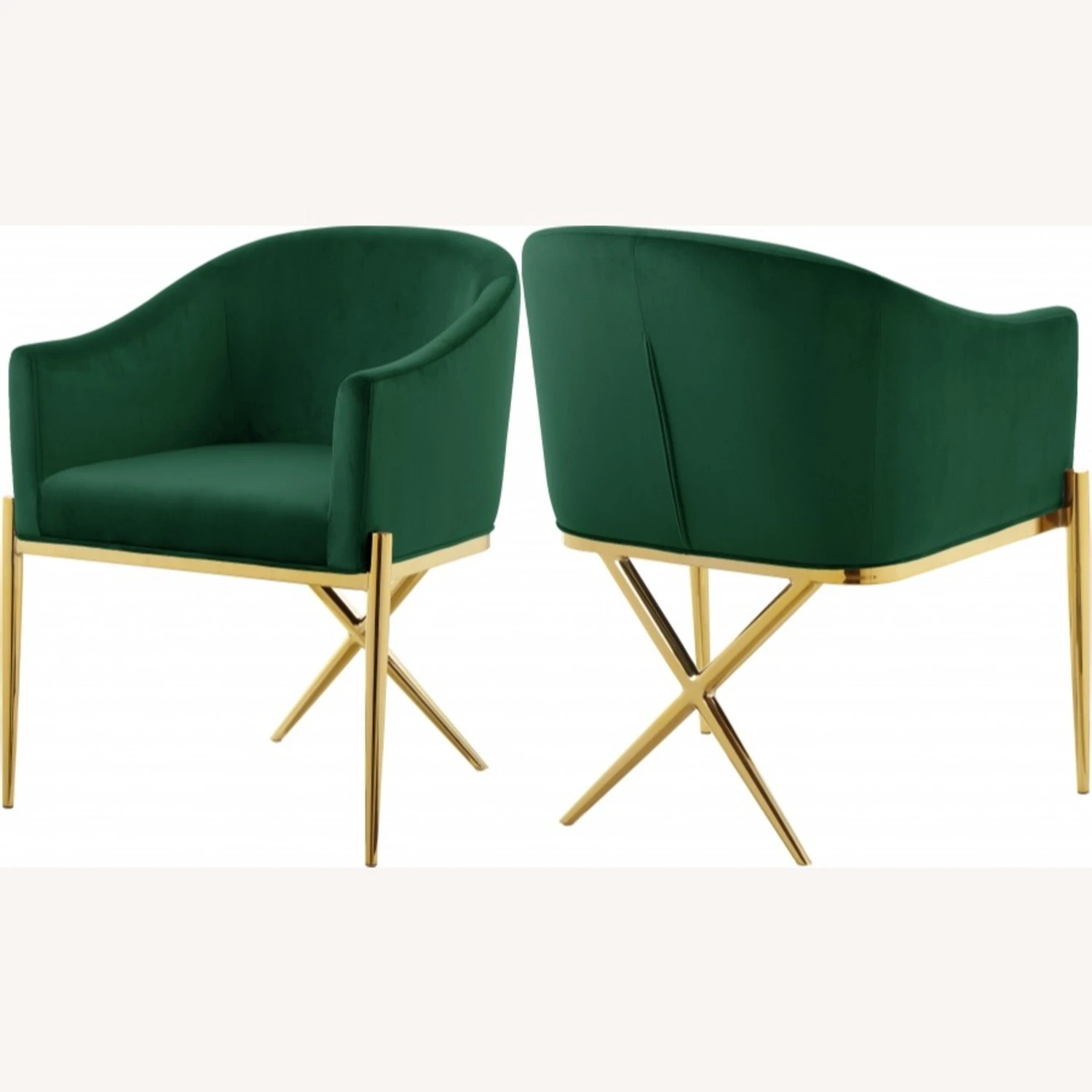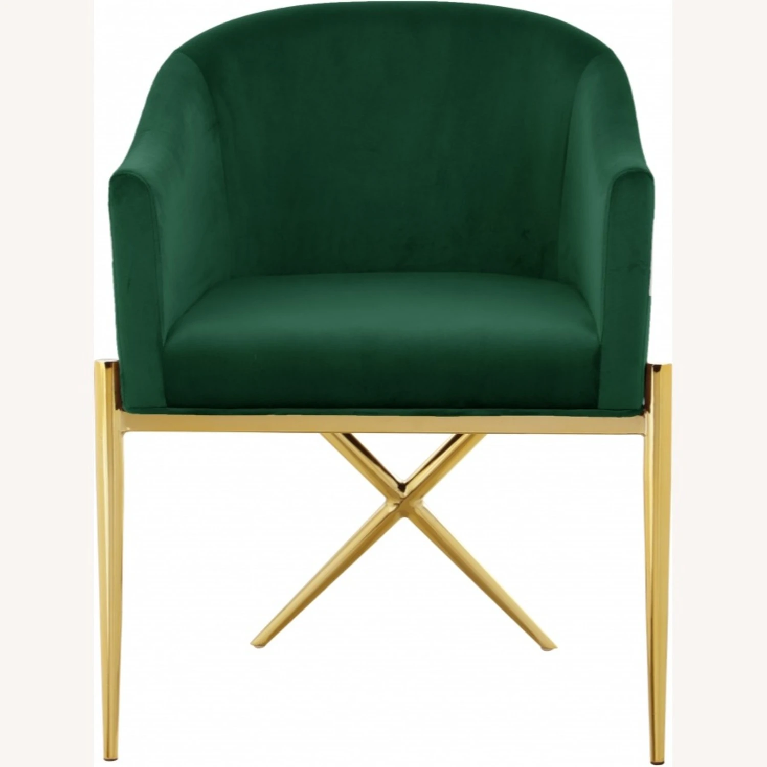 • The gold steel legs provide durable support while you sit, and an “X” leg in the back lends the chair an uber-modern vibe.