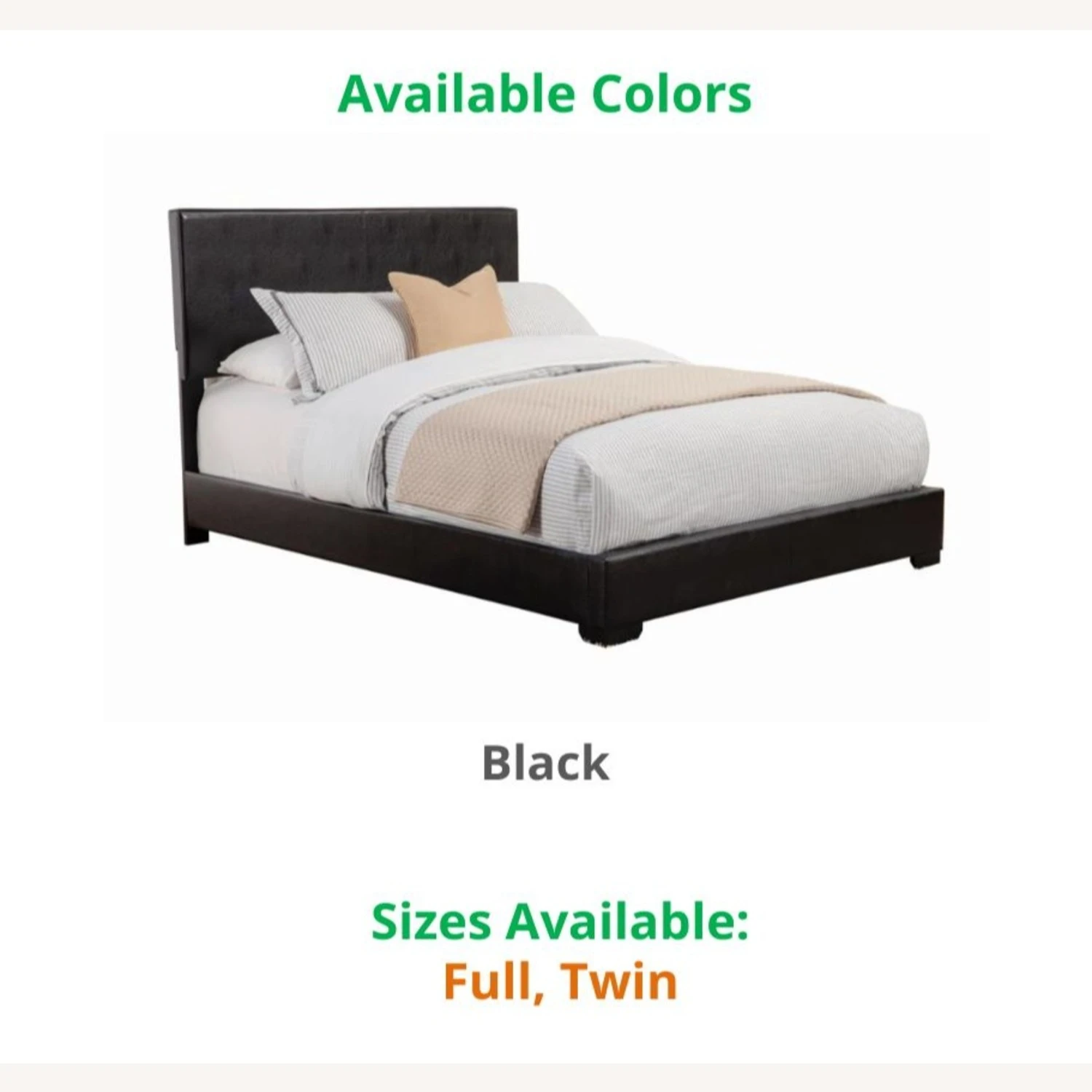 This model comes in these BLACK, and these sizes: TWIN and FULL. If you are interested in a color/size other than that of this listing, and if the quantity you wish to purchase is greater than what is listed here, please message us for availability.