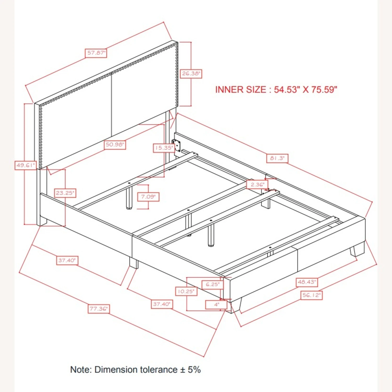 Full Bed 57.75”w x 81.25”d x 49.50”h (4 slats)