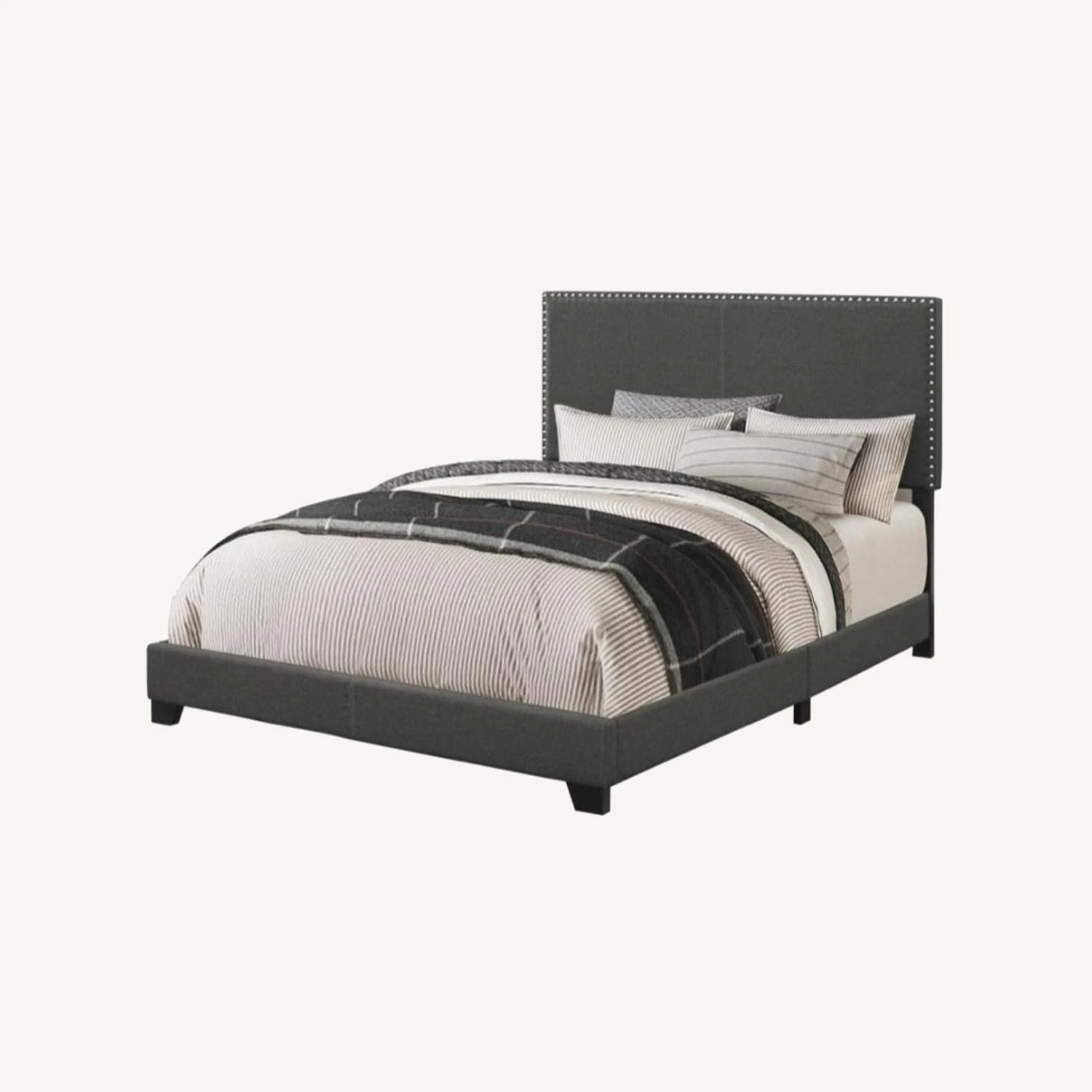 • Upholstered bed in a charcoal fabric