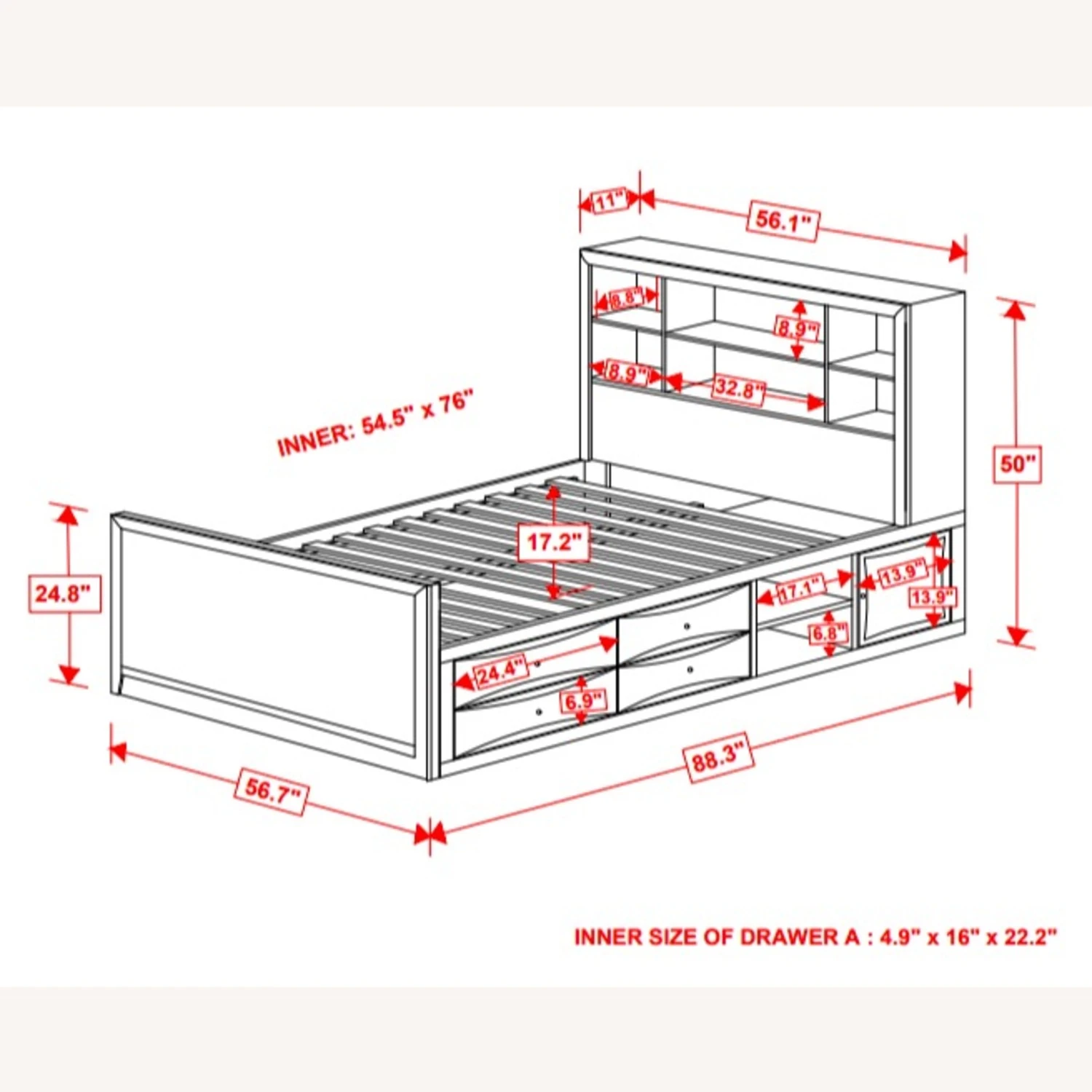Full Storage Bed 56.25”w x 88.25”d x 50.00”-24.75”h (14 slats)