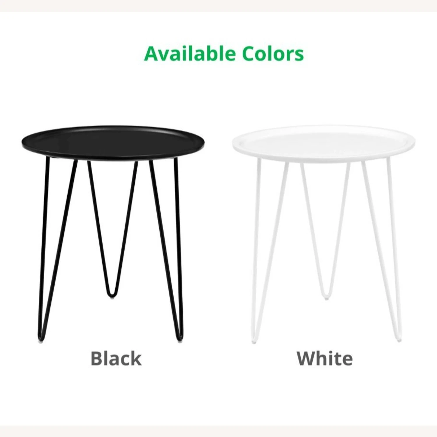 • The perfect accent for small living spaces, it comes outfitted with a triad of matte-finished, steel hairpin legs and features a round fiberboard top with matte paint finish.