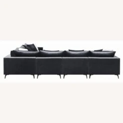 • This sectional combines plush comfort and dark tones to be the showpiece of any living space
