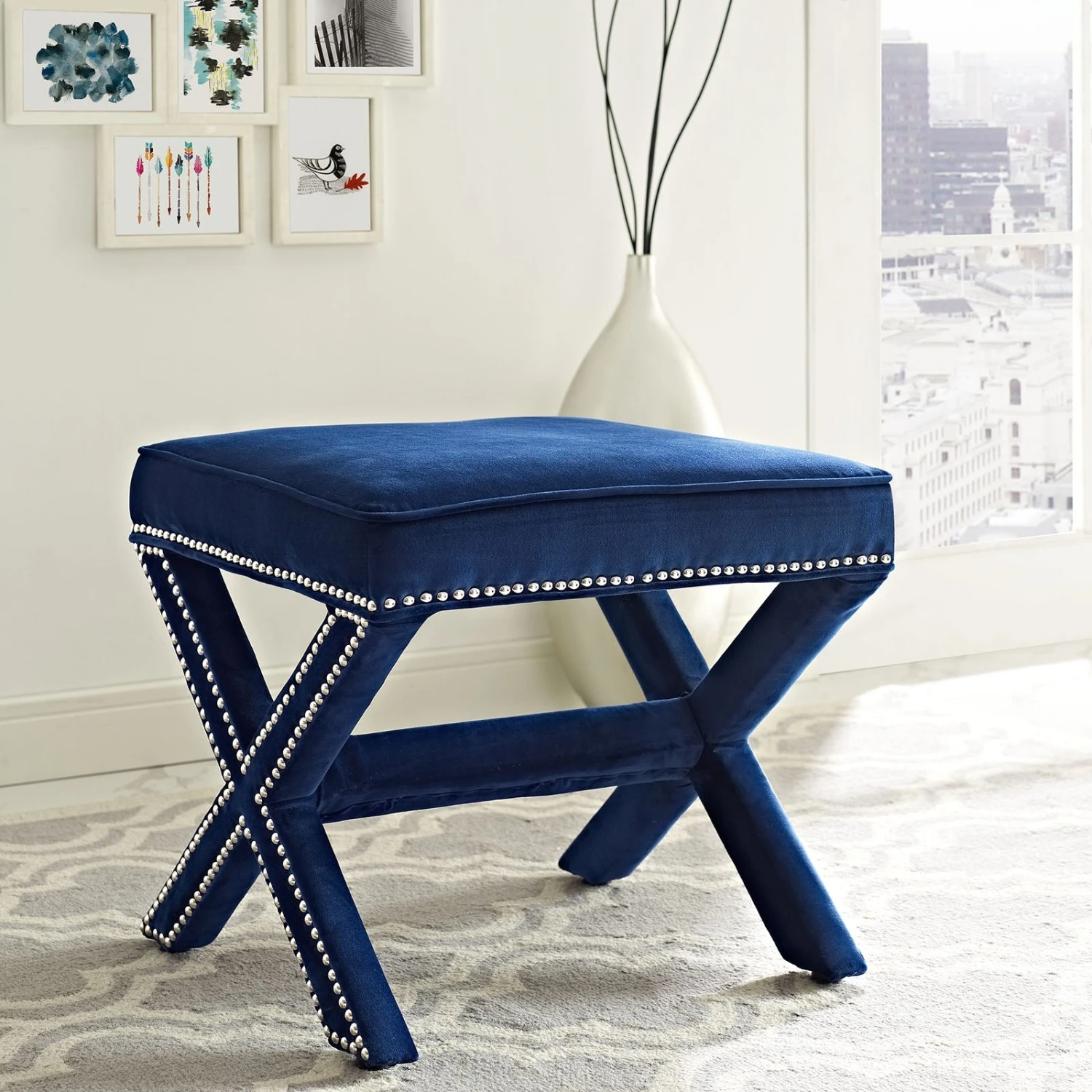 • Featuring elegant nailhead trim and surrounded by velvety polyester fabric with dense foam padding, this is a perfectly soft and cozy ottoman/bench for the chic modern lifestyle.