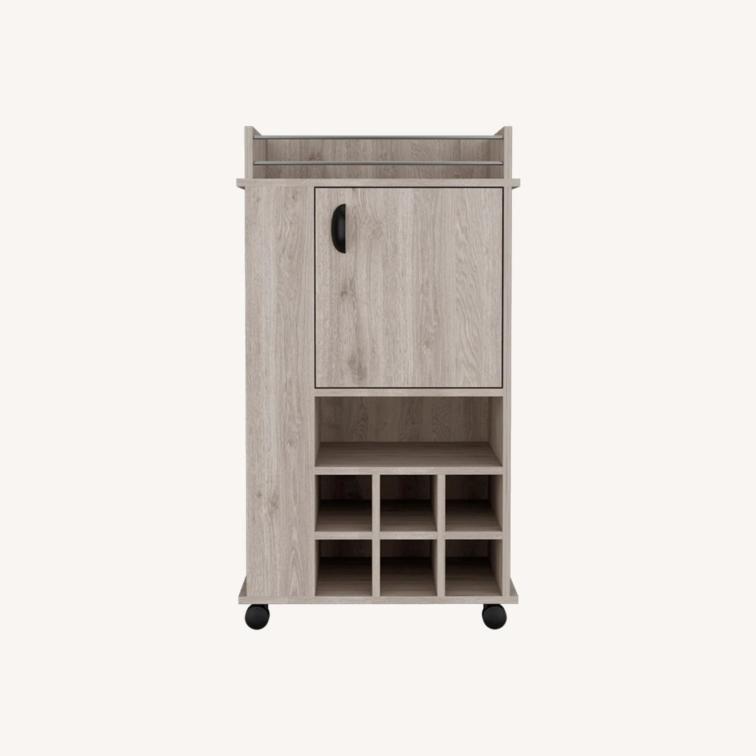 Seller’s Notes: “Elevate your hosting experience with the Reese Bar Cart, a stunning fusion of style, practicality, and versatility. Designed with an elegant and sturdy white, black or light gray manufactured wood finish, this bar cart brings a touch of sophistication to your home. At the same time, its smooth-rolling casters ensure easy mobility for effortless entertaining.