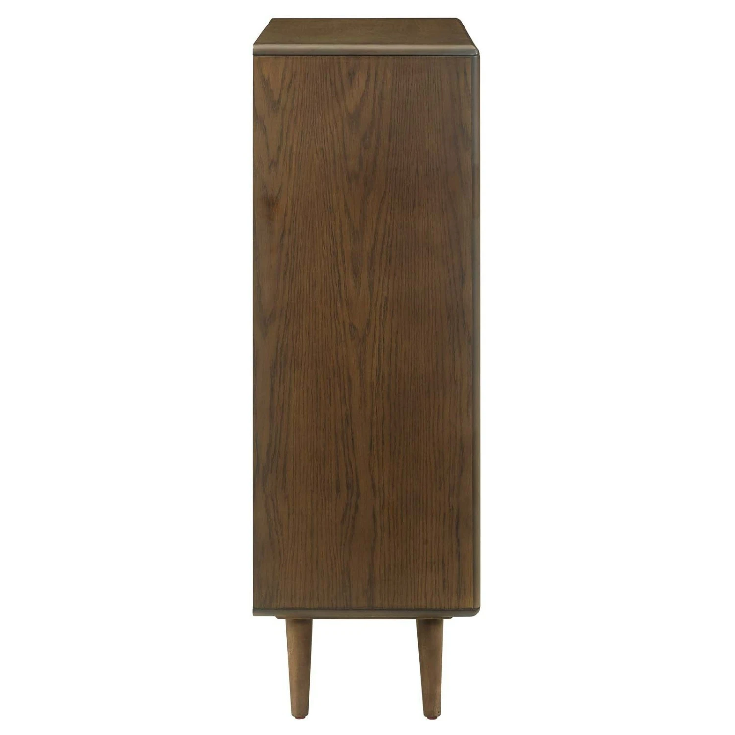 • The perfect complement to contemporary, mid-century modern and farmhouse decors, it is made of wood with chestnut wood grain veneer and sits atop an iconic splayed wood frame with stretcher and non-marking foot caps.