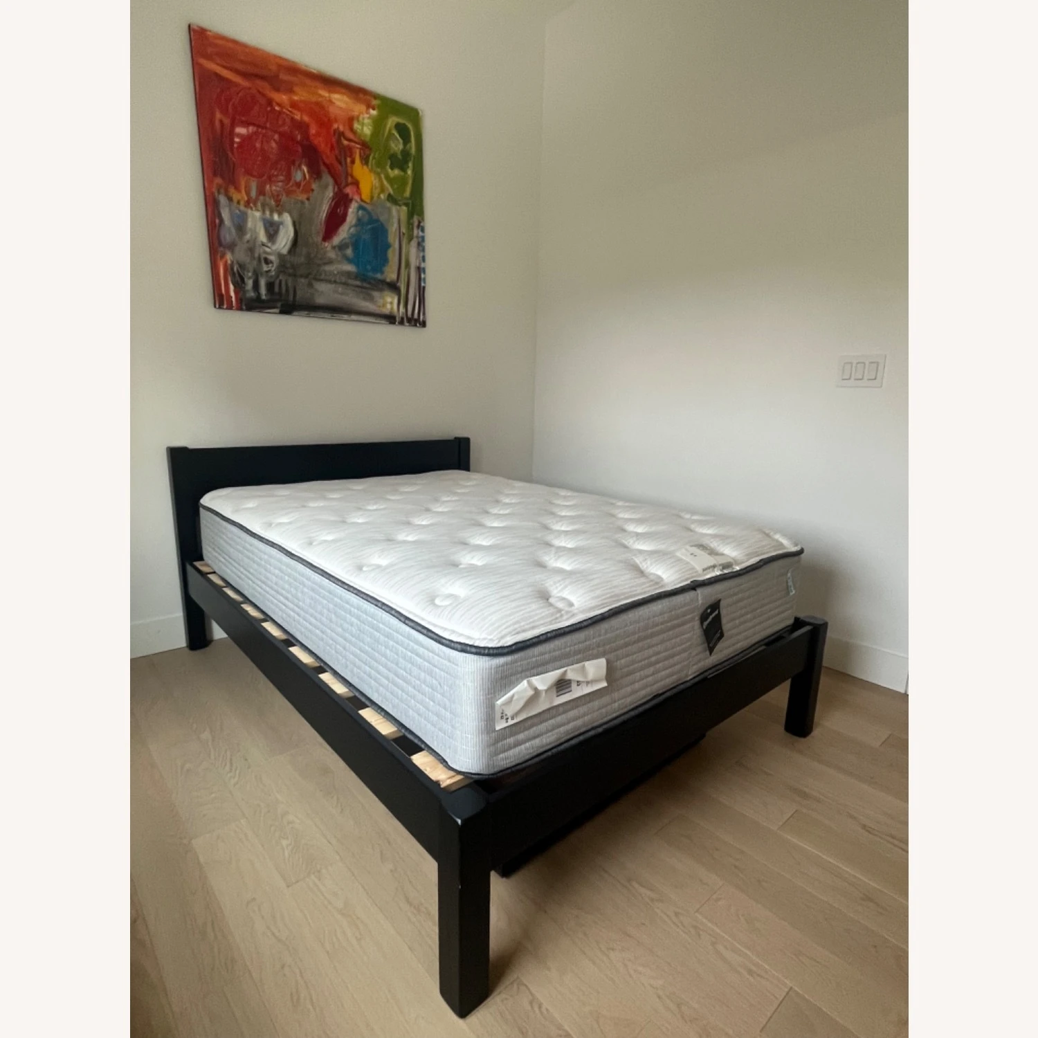 Also, comes with an under bed storage drawer. Almost new Full size Simmons Beeautyrest medium soft mattress available for free (optional) with pickup.
