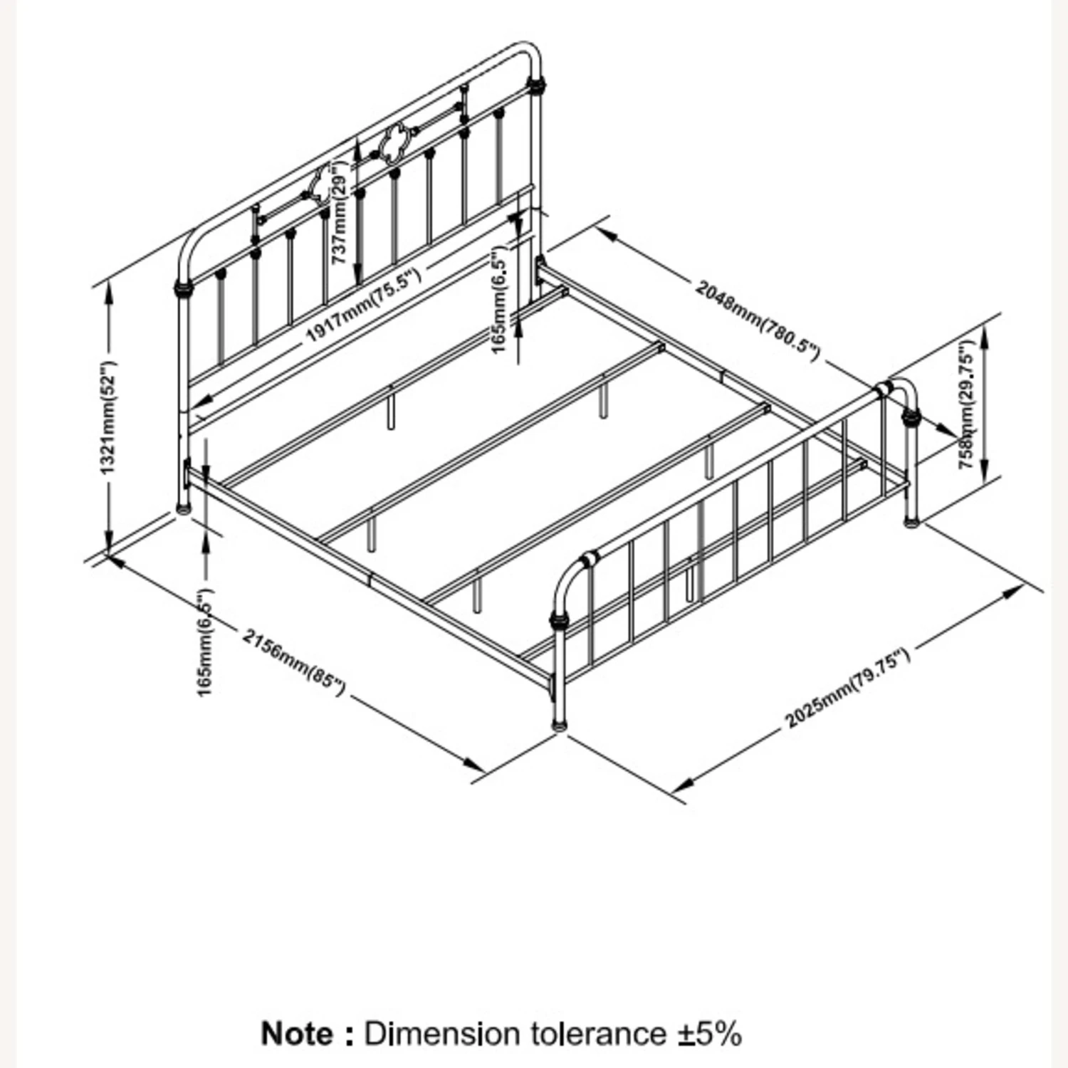 Eastern King Bed 80.50”w x 87.25”d x 51.50” (4 slats)