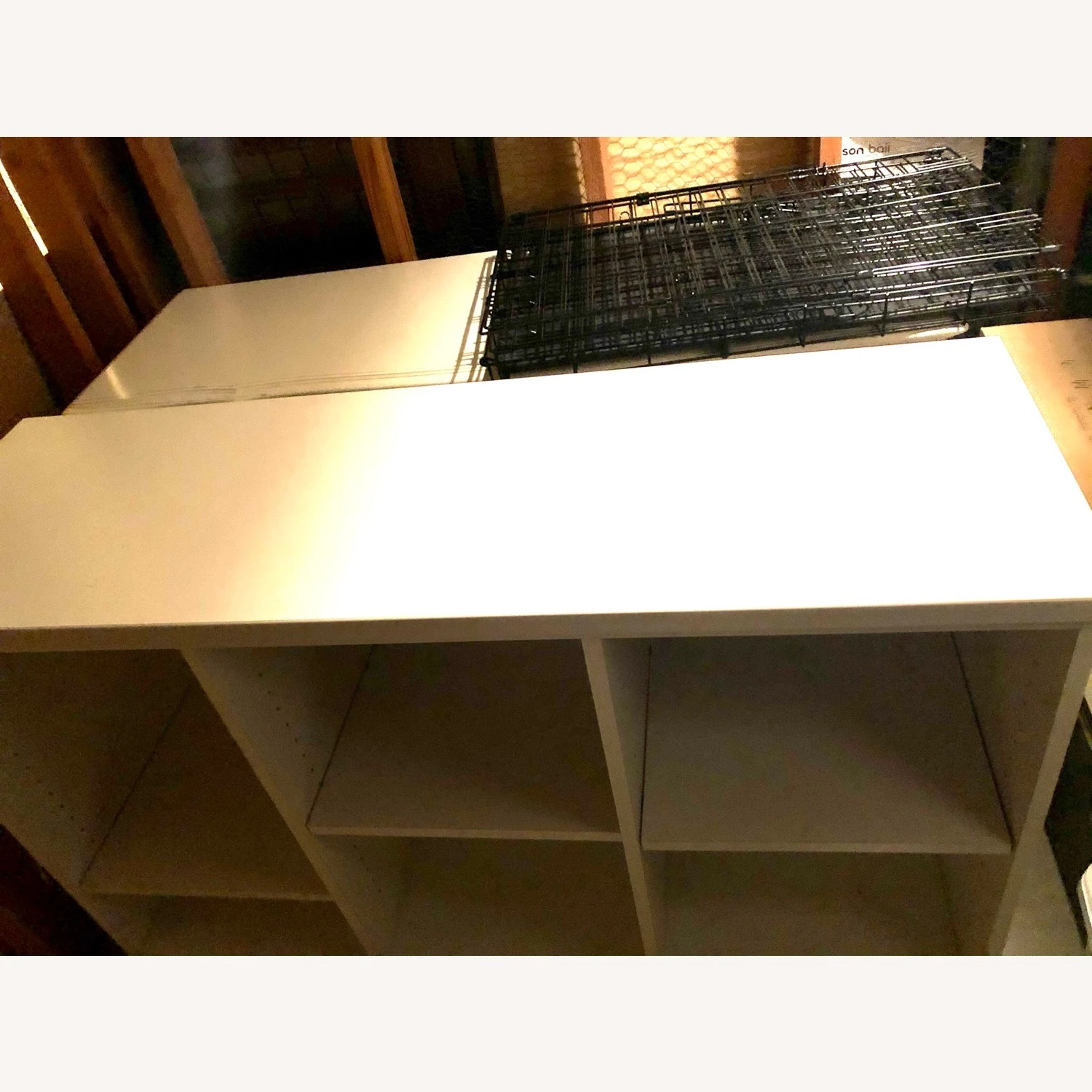 Seller’s Notes: This is a white wood and composite 6 cubby bookcase. It’s a pretty big piece and the cubbies are really large. They are also adjustable.