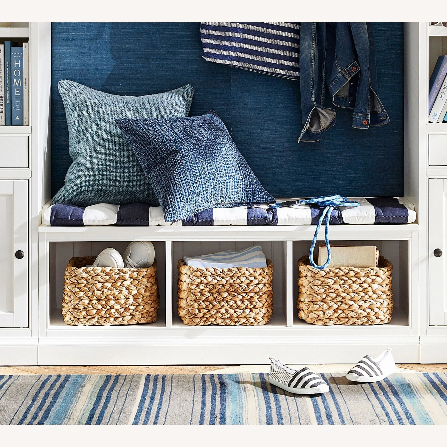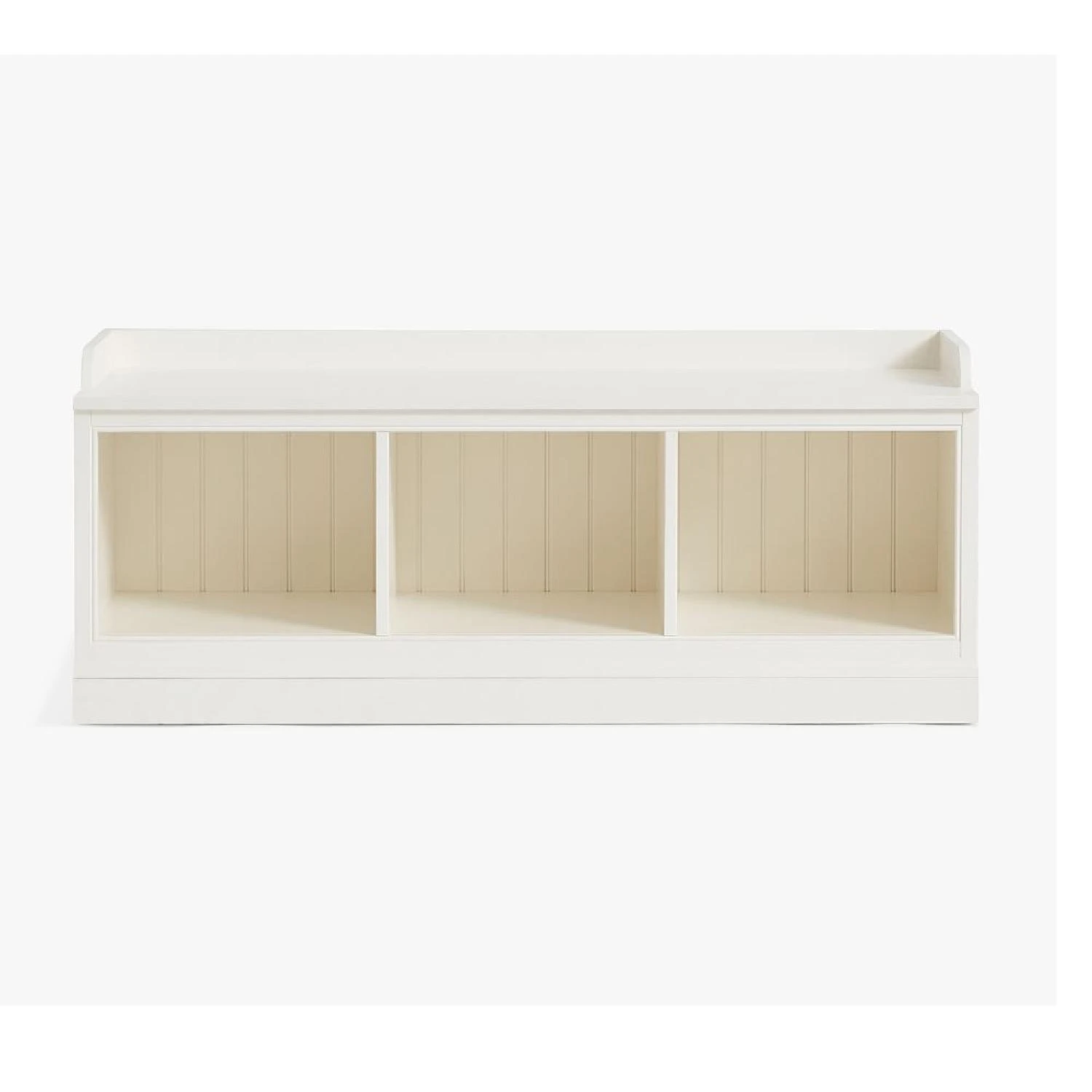Three spacious cubbies, for storage. Can pair with baskets (sold separately) or top with cushion (sold separately).