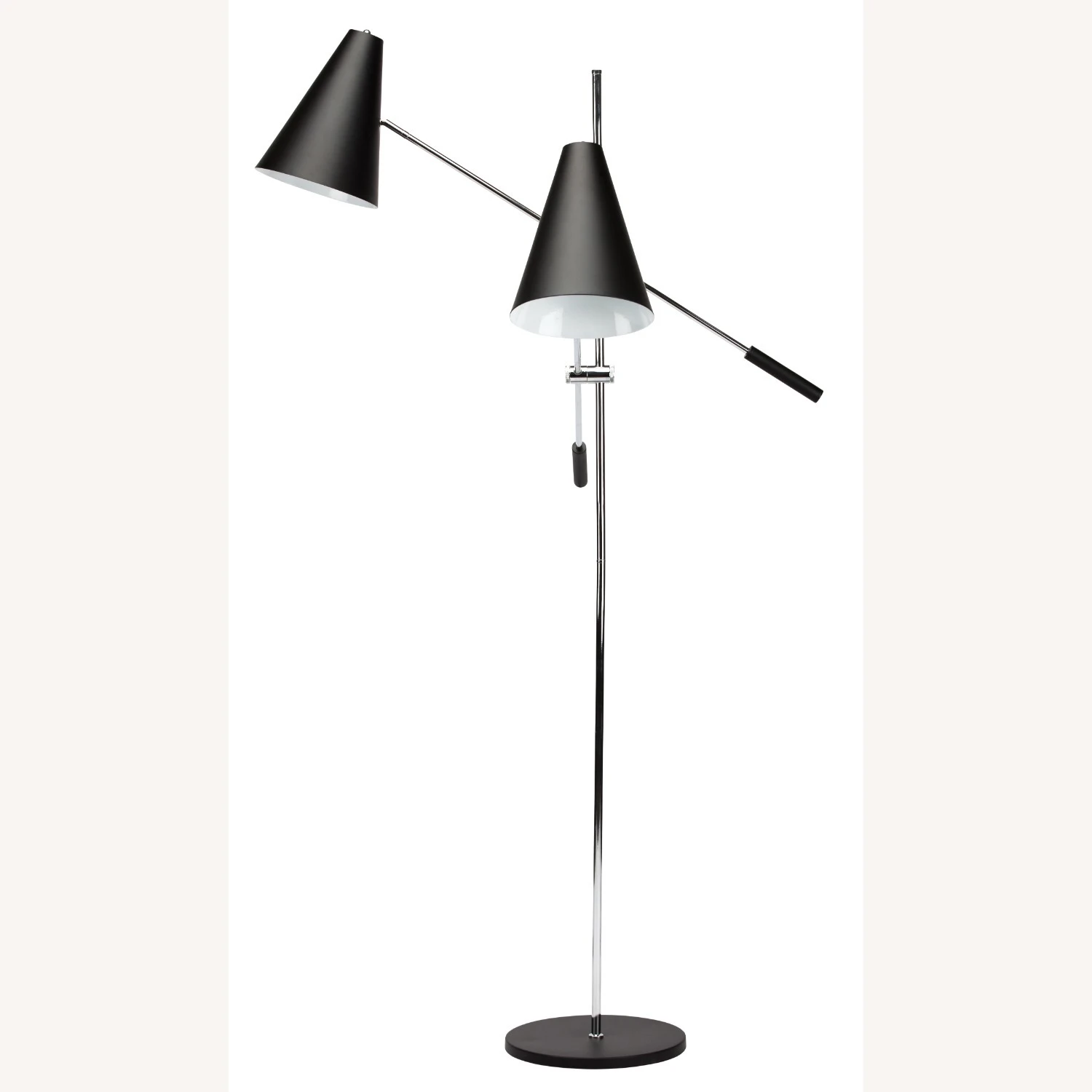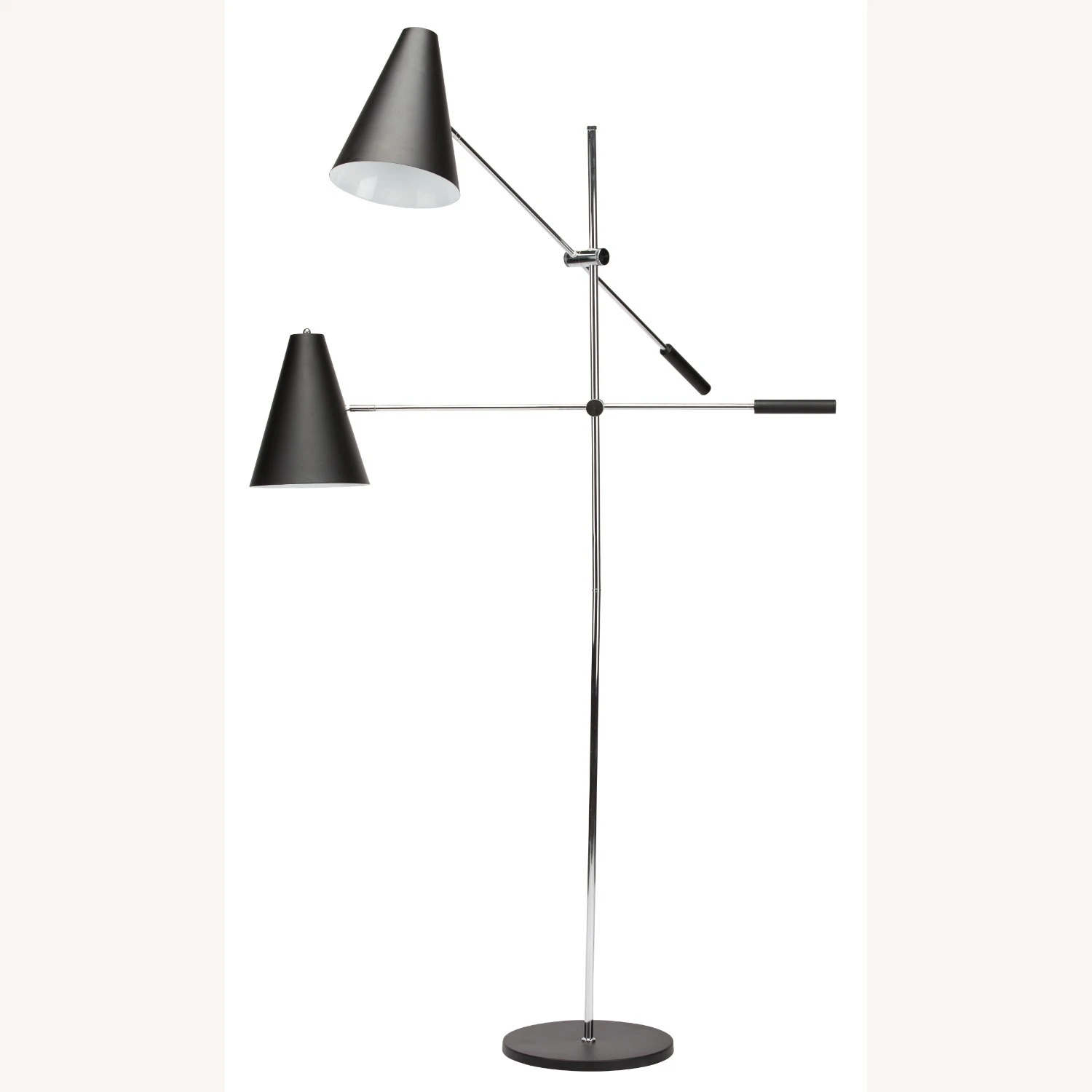 Seller’s Notes: This floor light’s two articulated shades ensure highly customizable illumination in a stylishly elegant package.