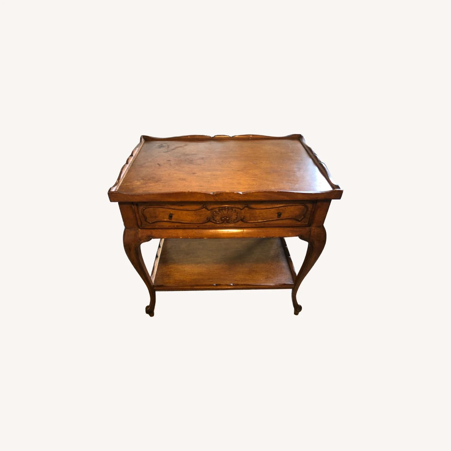 This end table is made of solid hardwood, shows beautiful wood grain, features 1 dovetailed drawer with a shell carved in the middle, cabriole legs.
