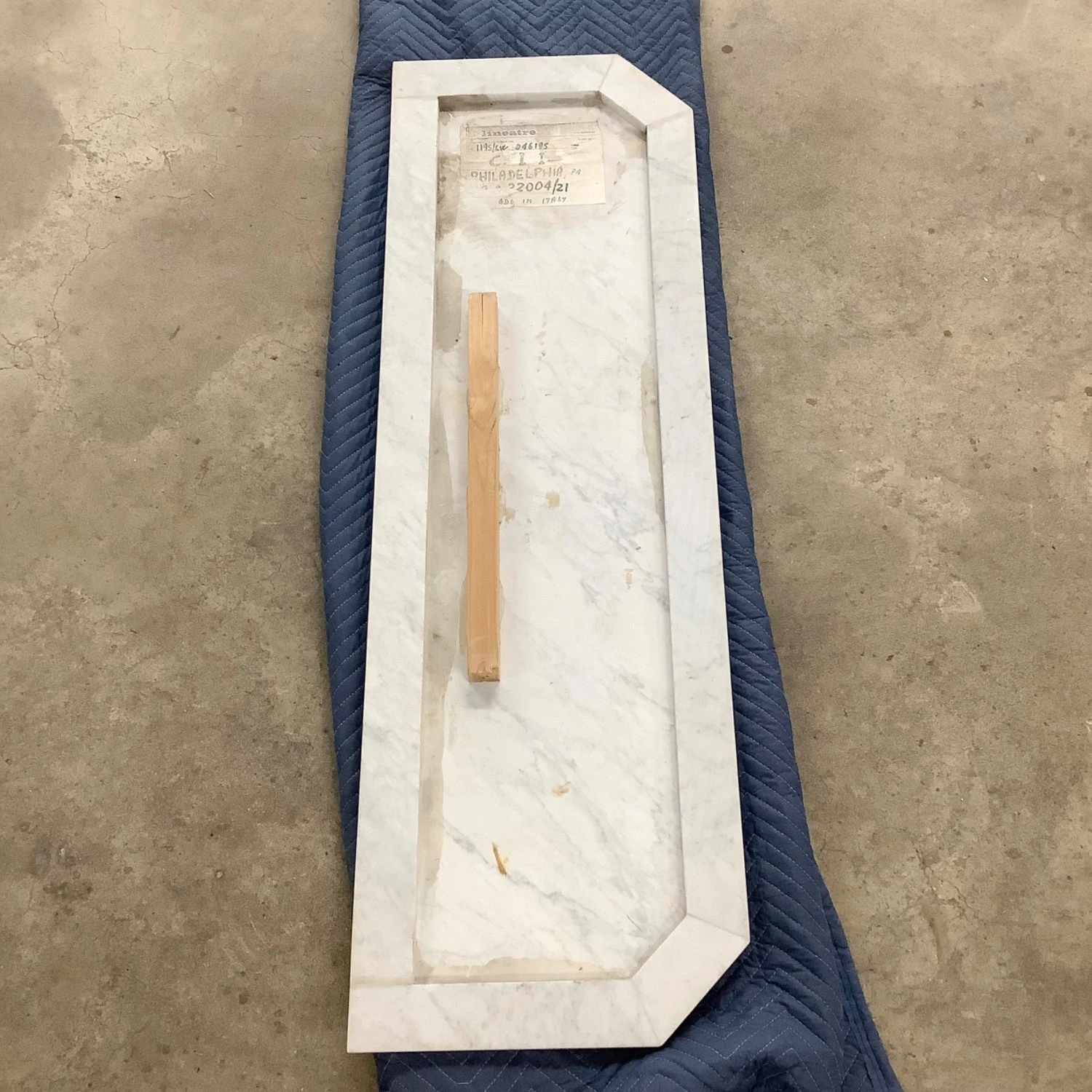 Seller’s Notes: This stunning marble console table features HEAVY Italian modern construction with beautiful finish and shapely beveled edge. The impressive size of this thick stone console table makes it a substantial addition to entryway, hall, or otherwise.