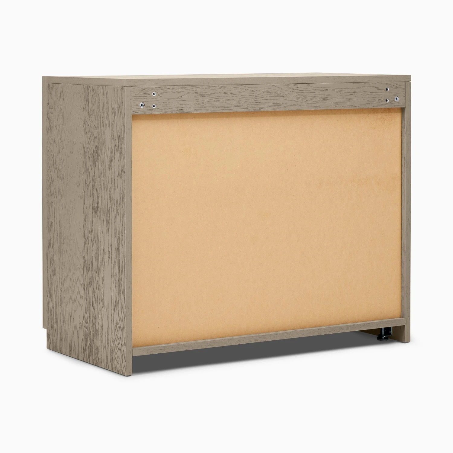 Oak veneer over engineered wood top, sides, doors and shelves.