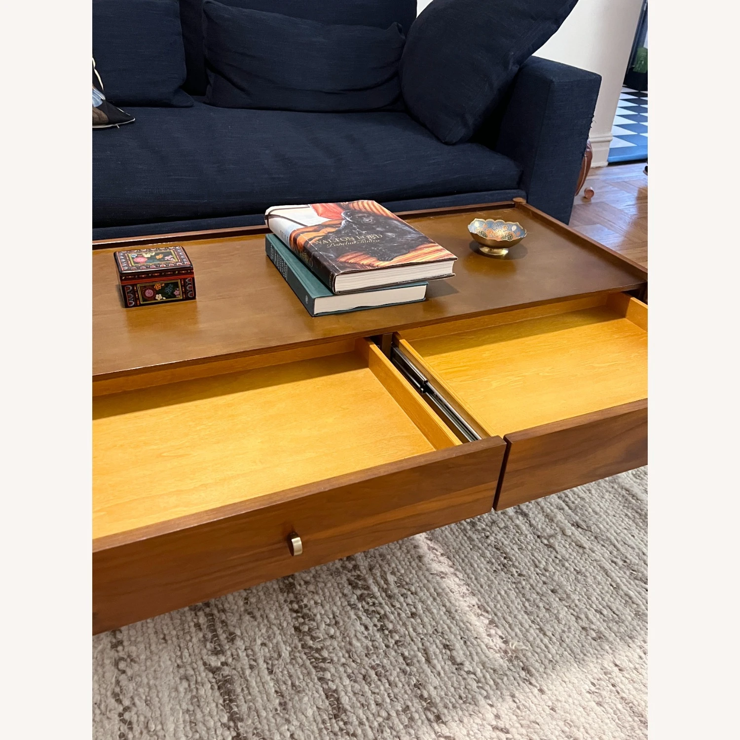 This coffee table has been a great companion for me and my husband for a few years. We moved to a different apartment and unfortunately, it doesn’t work in our new living room setup. It is from west elm but I don’t think they sell this model anymore, but here is a similar one: https://www.westelm.com/products/mid-century-storage-coffee-table-acorn-h4542/?pkey=ccoffee-tables