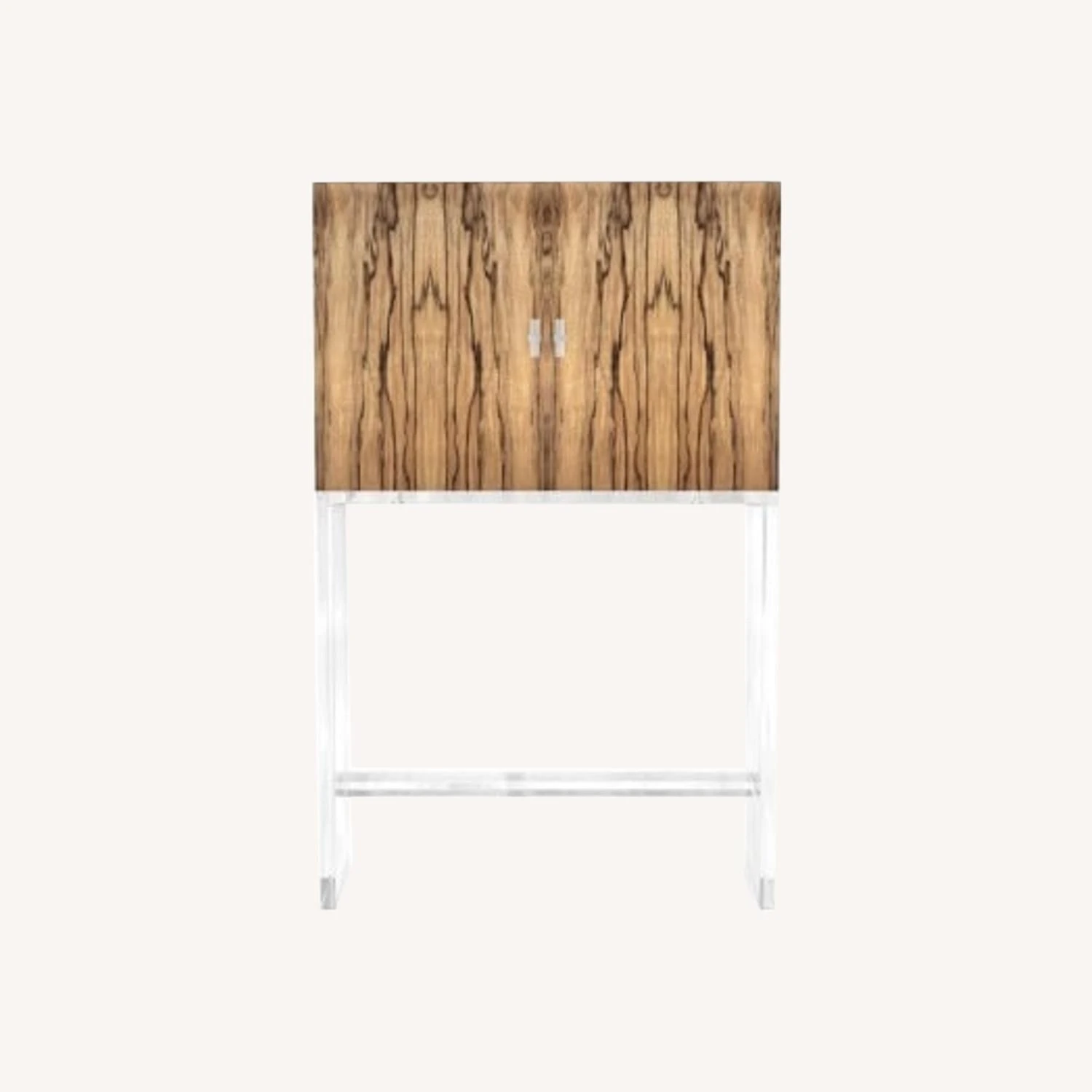 Seller’s Notes: A modern mix of materials-mahogany wood clad in offram veneer and sleek, see-through acrylic-give this bar cabinet stunning style.
